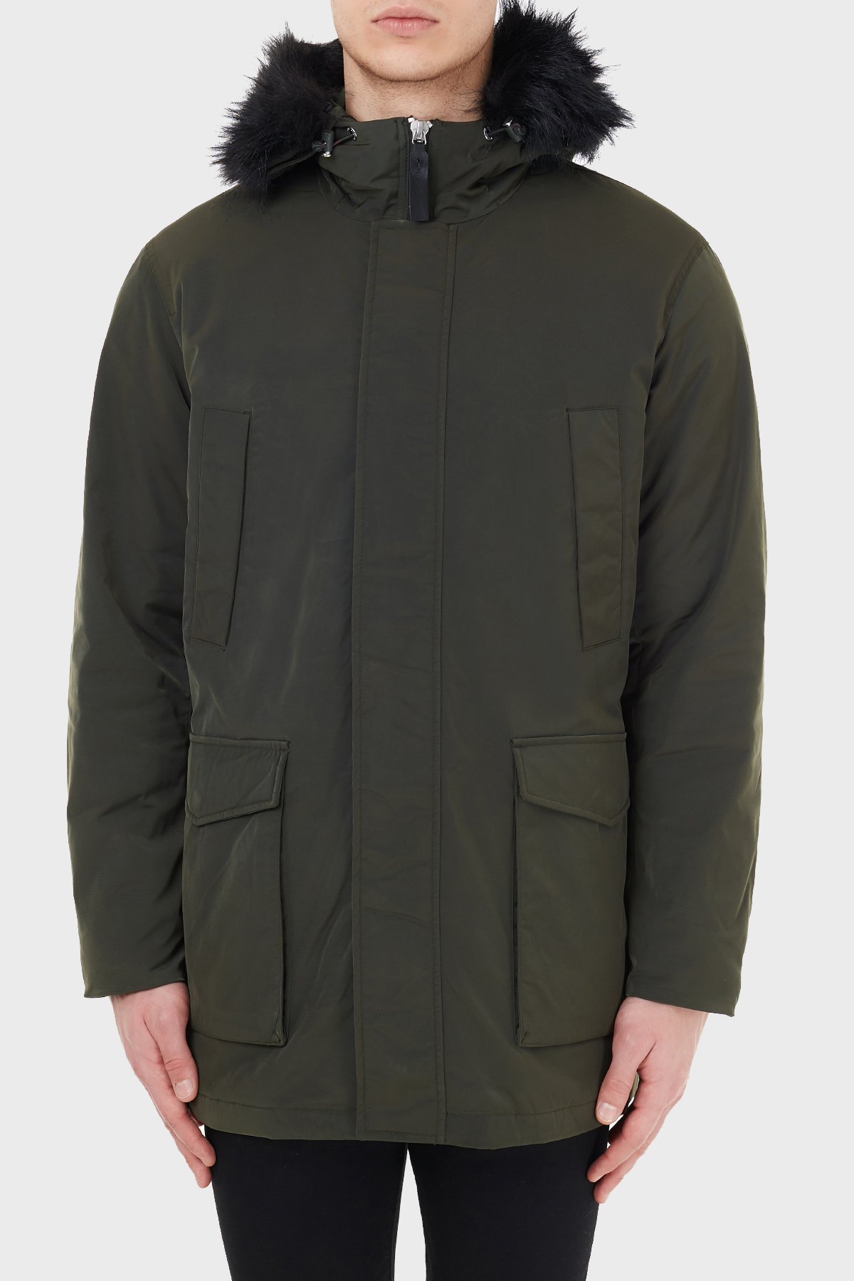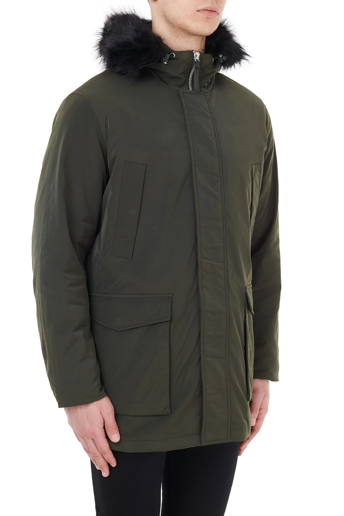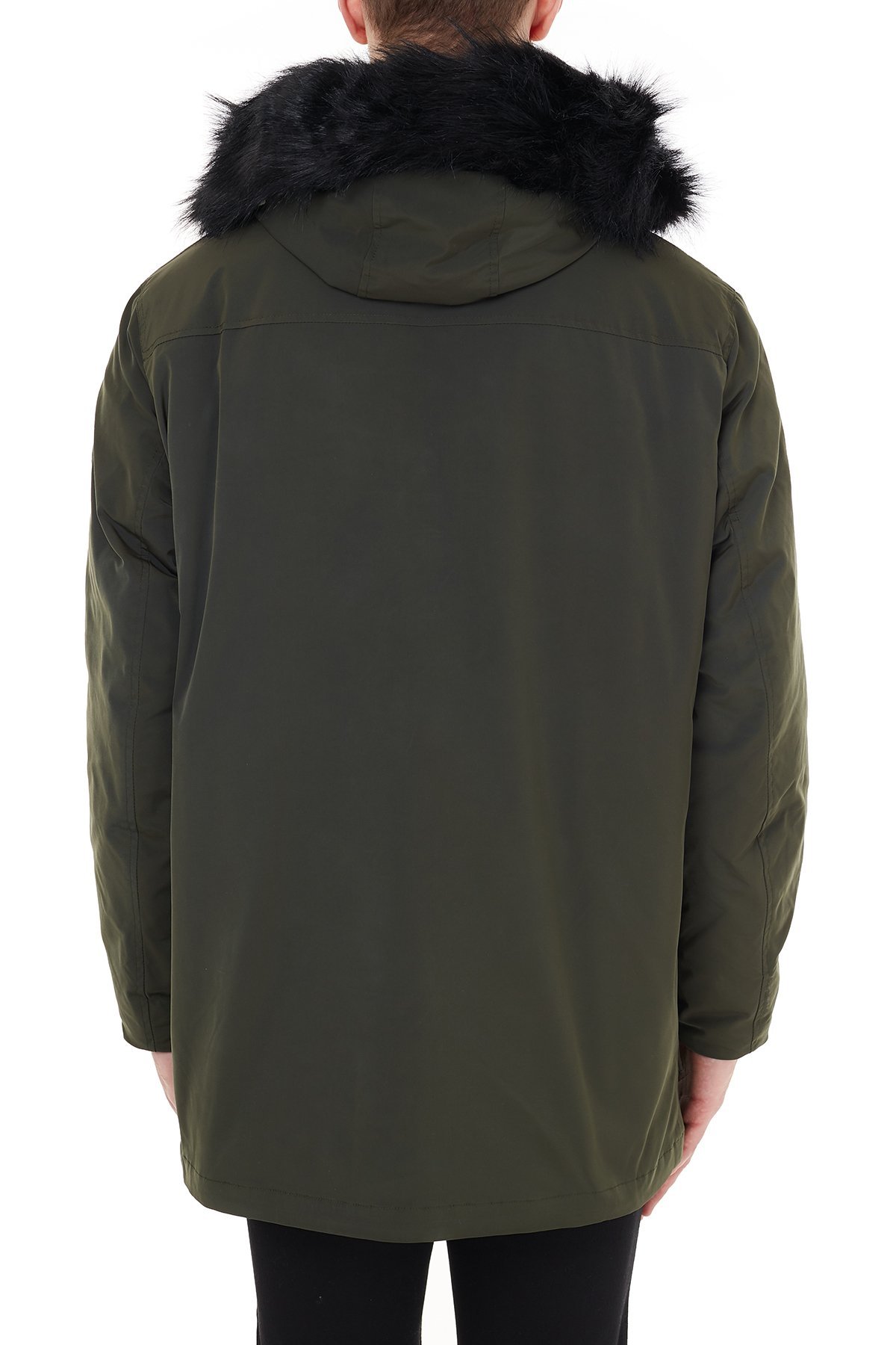 Yakası Suni Kürklü Kapüşonlu Erkek Kaban 6HZK39 ZNNYZ 1851 HAKİ