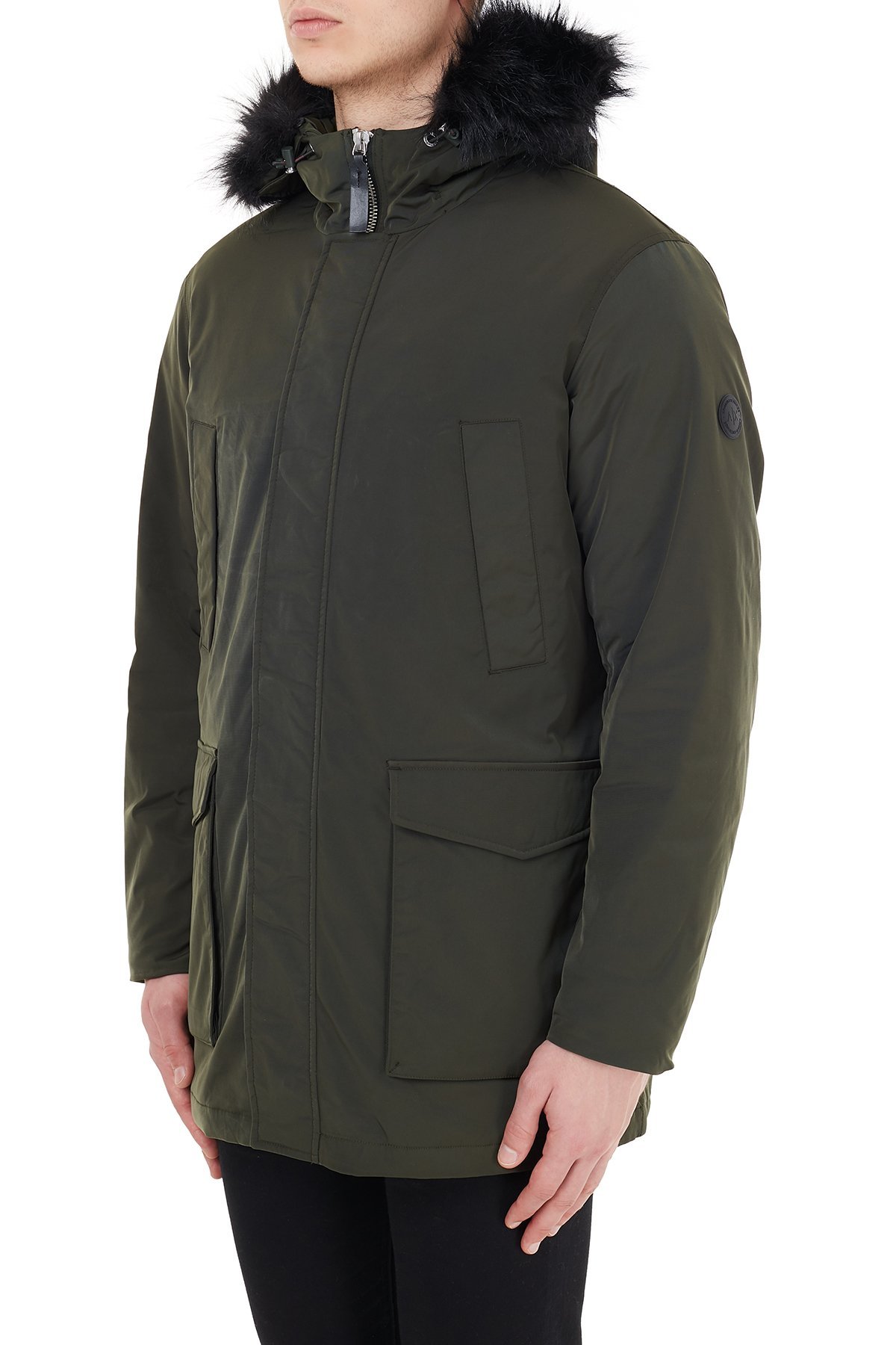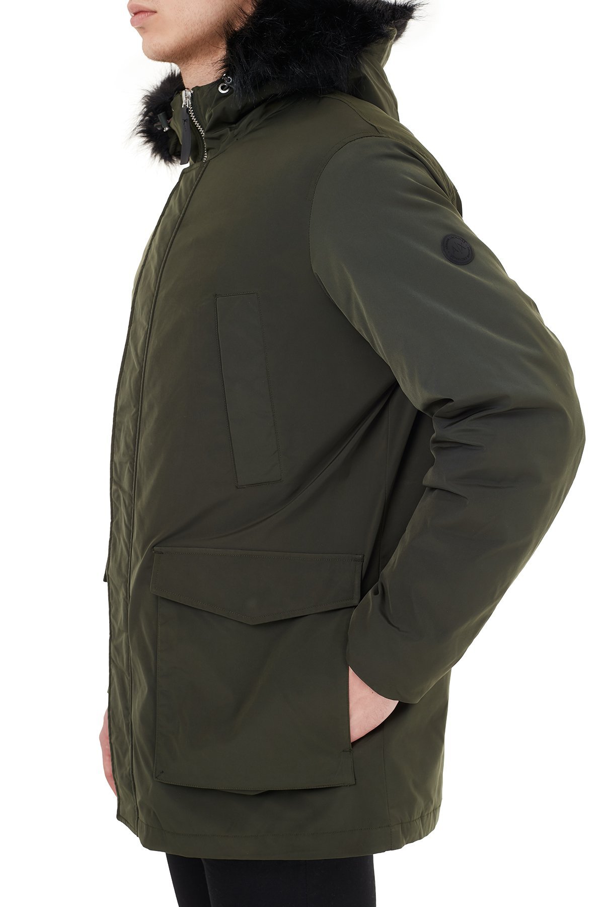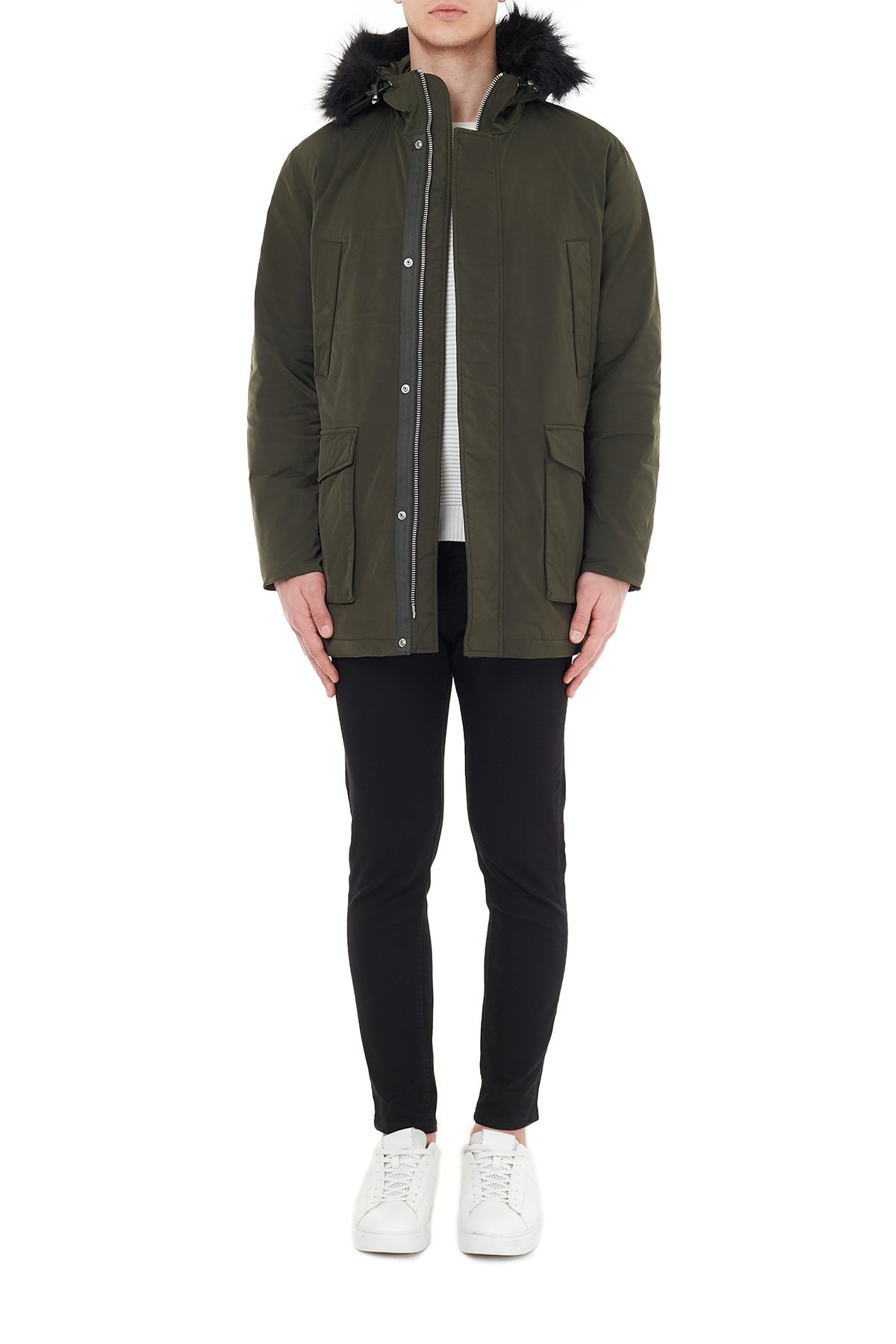 Yakası Suni Kürklü Kapüşonlu Erkek Kaban 6HZK39 ZNNYZ 1851 HAKİ