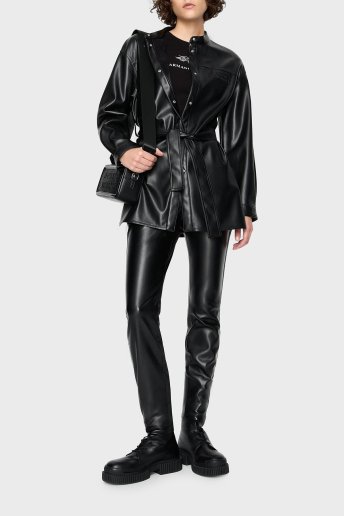 Yanları Kontrast Çizgili Yüksek Bel Regular Fit Deri Bayan Pantolon 6RYP32 YN8PZ 1200 SİYAH