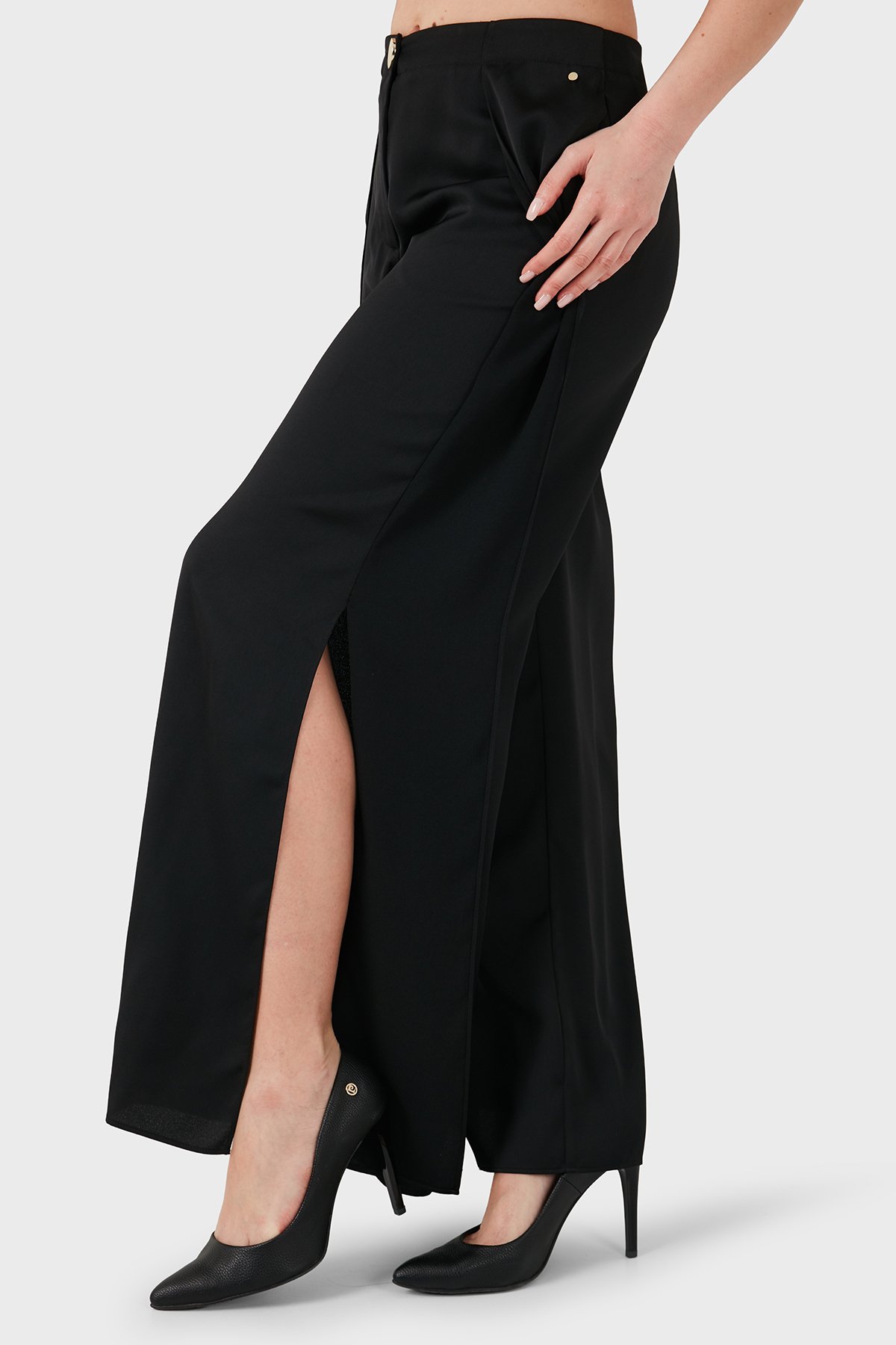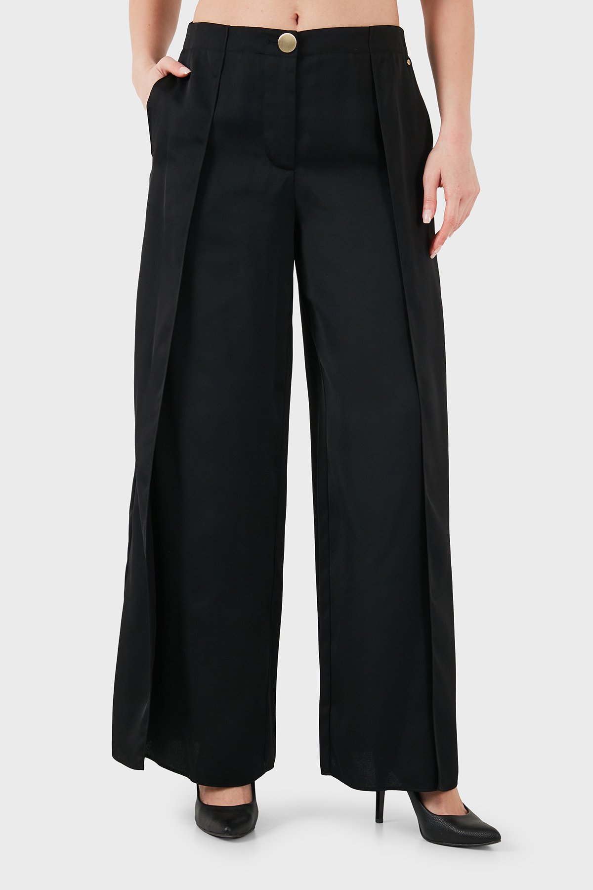 Yırtmaç Detaylı Regular Fit Geniş Paça Kadın Pantolon XW001955 AF21553 UC001 SİYAH