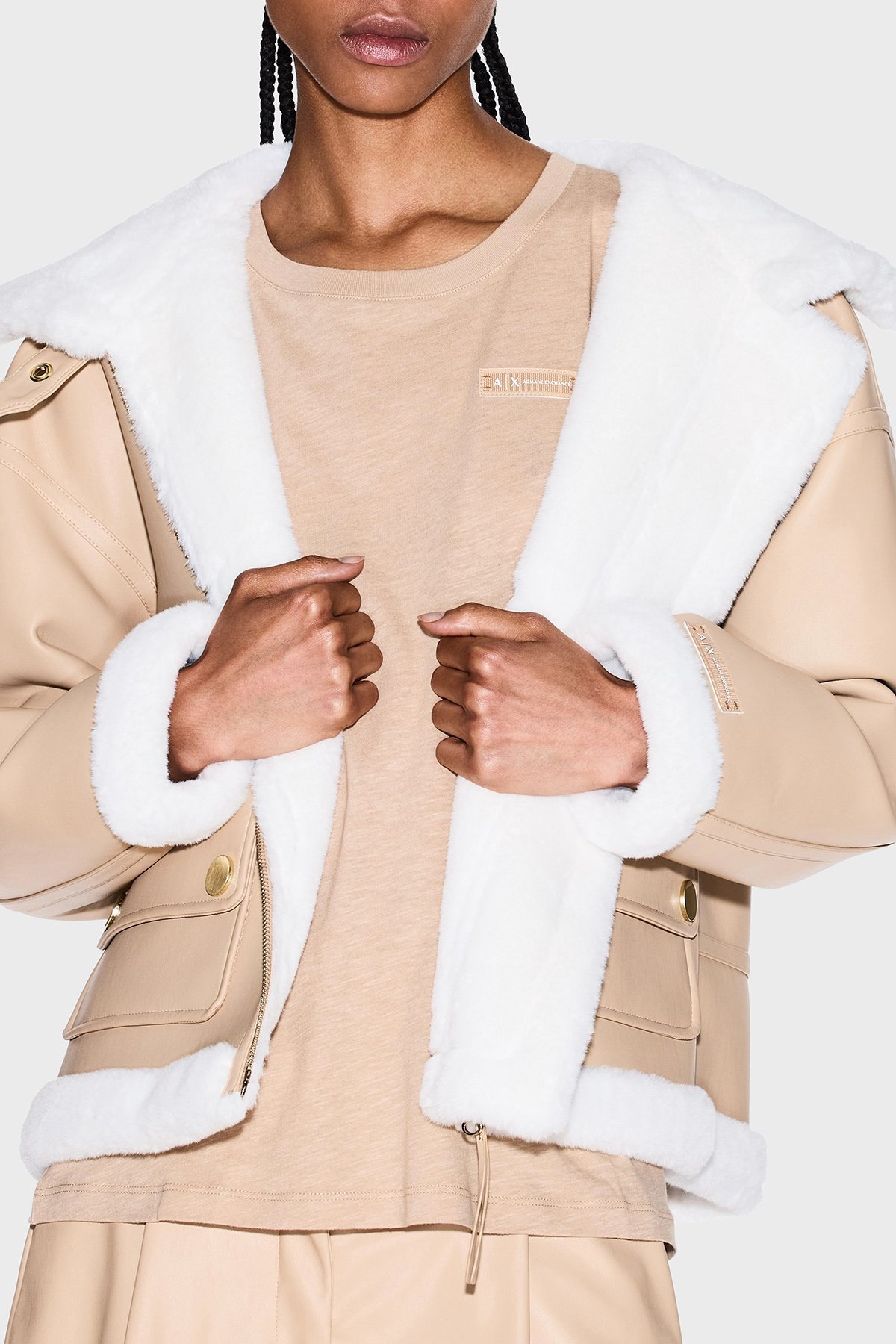 Detaylar: -İç kısmı yumuşak suni kürk -Suni koyun postu yaka ve manşetler