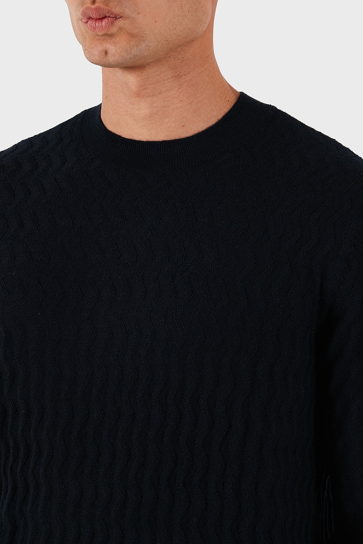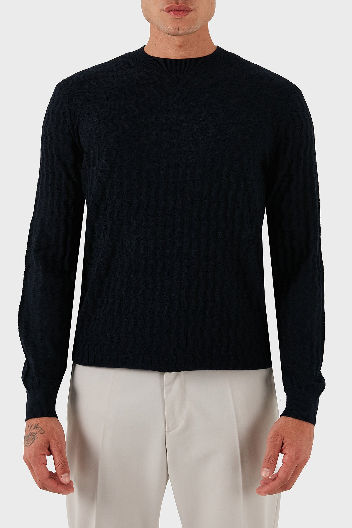 Yün Karışımlı Regular Fit Bisiklet Yaka Dalgalı Dokuma Erkek Kazak XM001560 AF11982 FB065 LACİVERT