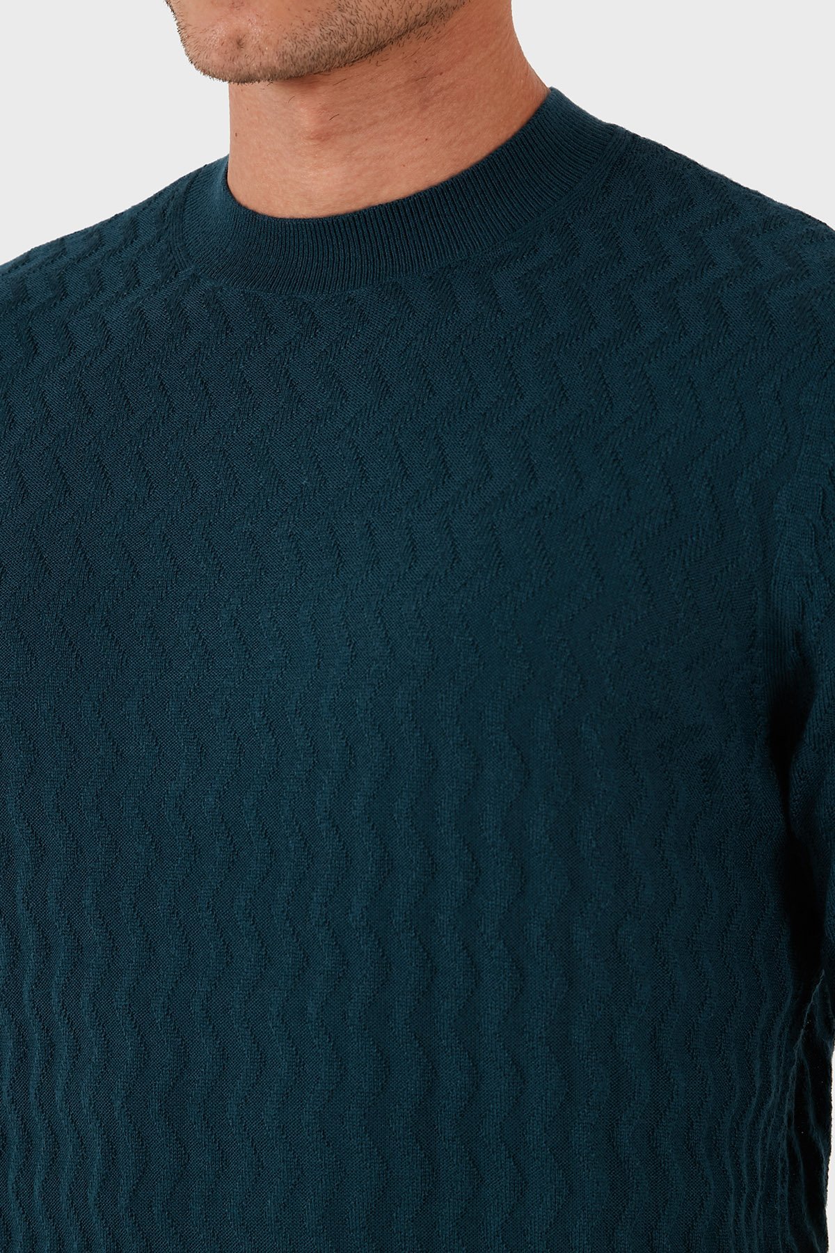 Yün Karışımlı Regular Fit Bisiklet Yaka Dalgalı Dokuma Erkek Kazak XM001560 AF11982 FB068 PETROL