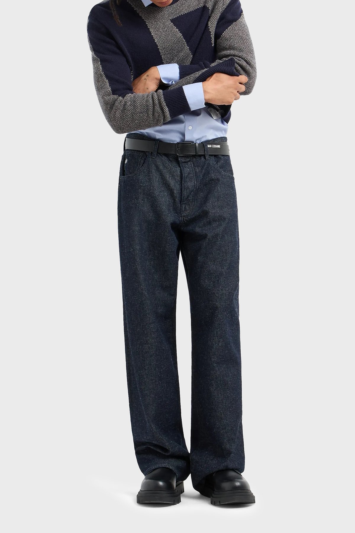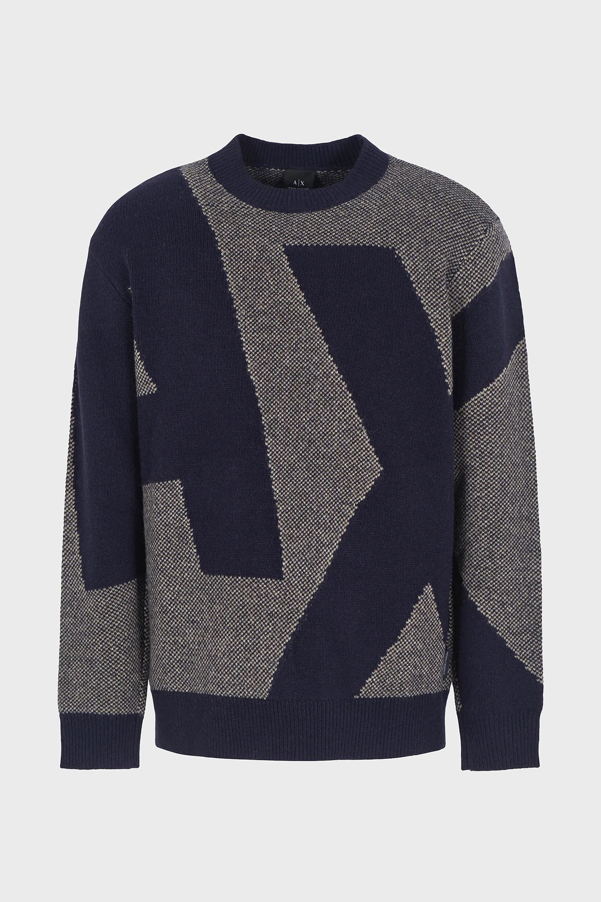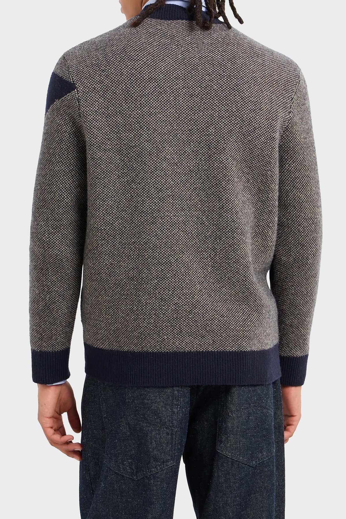 Yünlü Regular Fit Bisiklet Yaka Jakarlı Örme Erkek Kazak 6DZM2Q ZM4QZ 45AX LACİVERT-GRİ