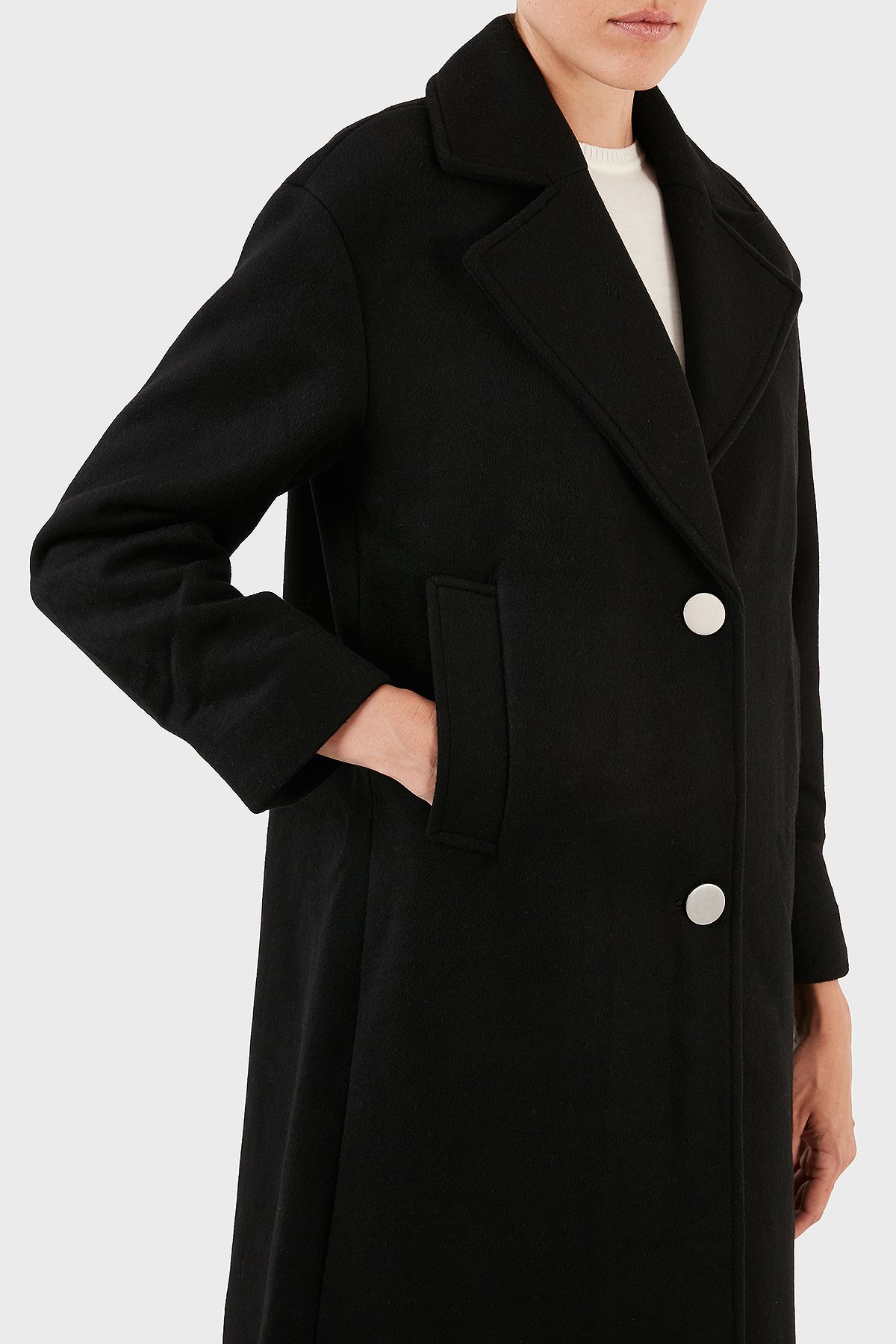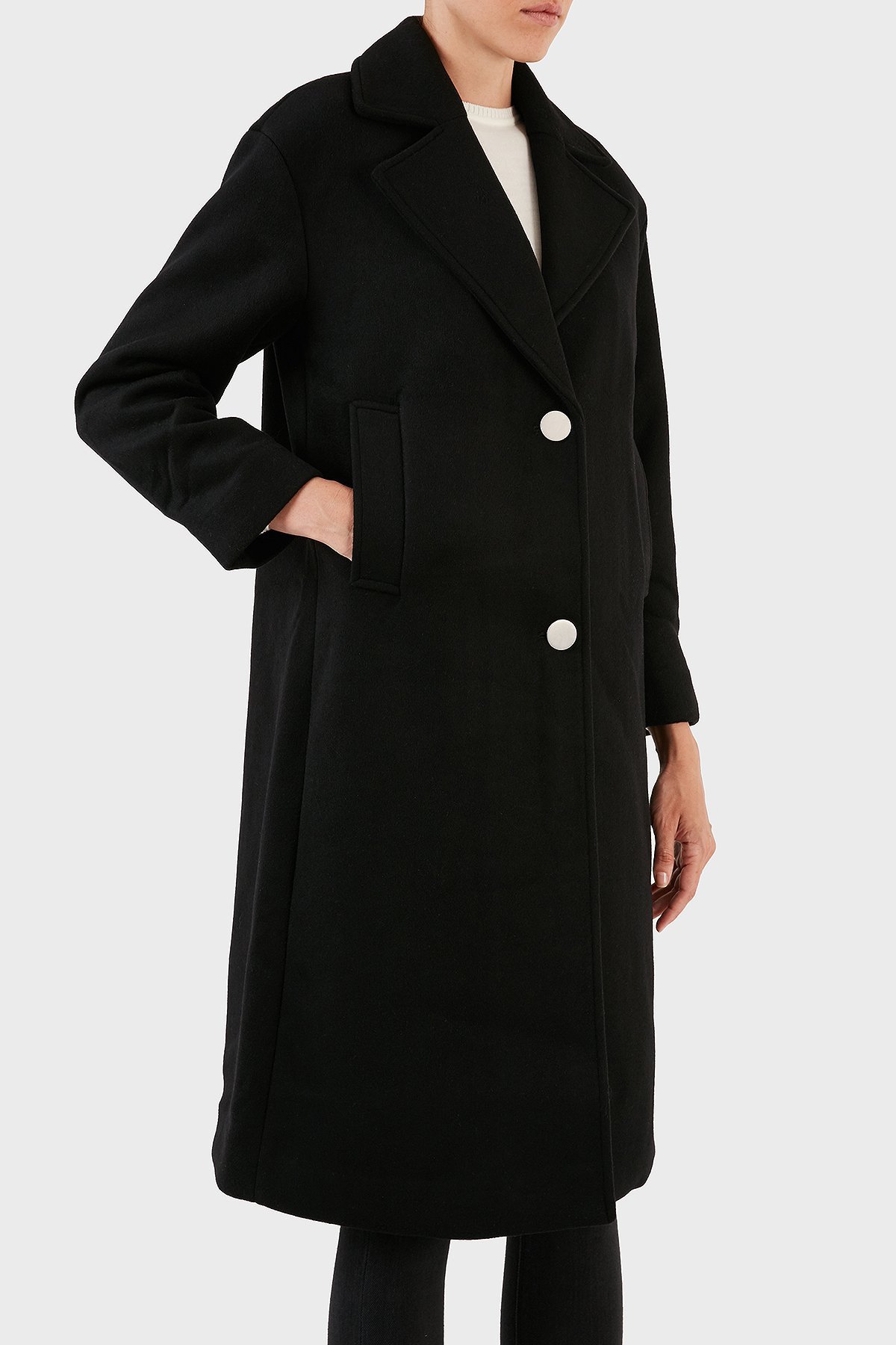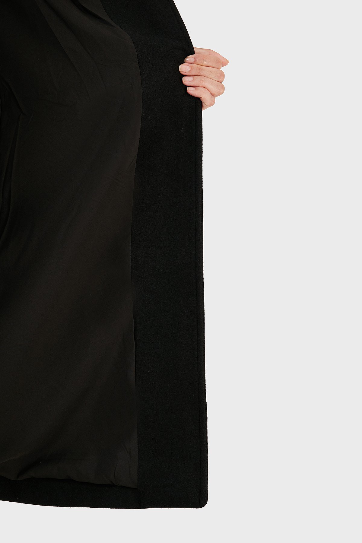 Yünlü Regular Fit Mono Yaka Düğmeli Bayan Kaban 6RYL40 YN8LZ 1200 SİYAH