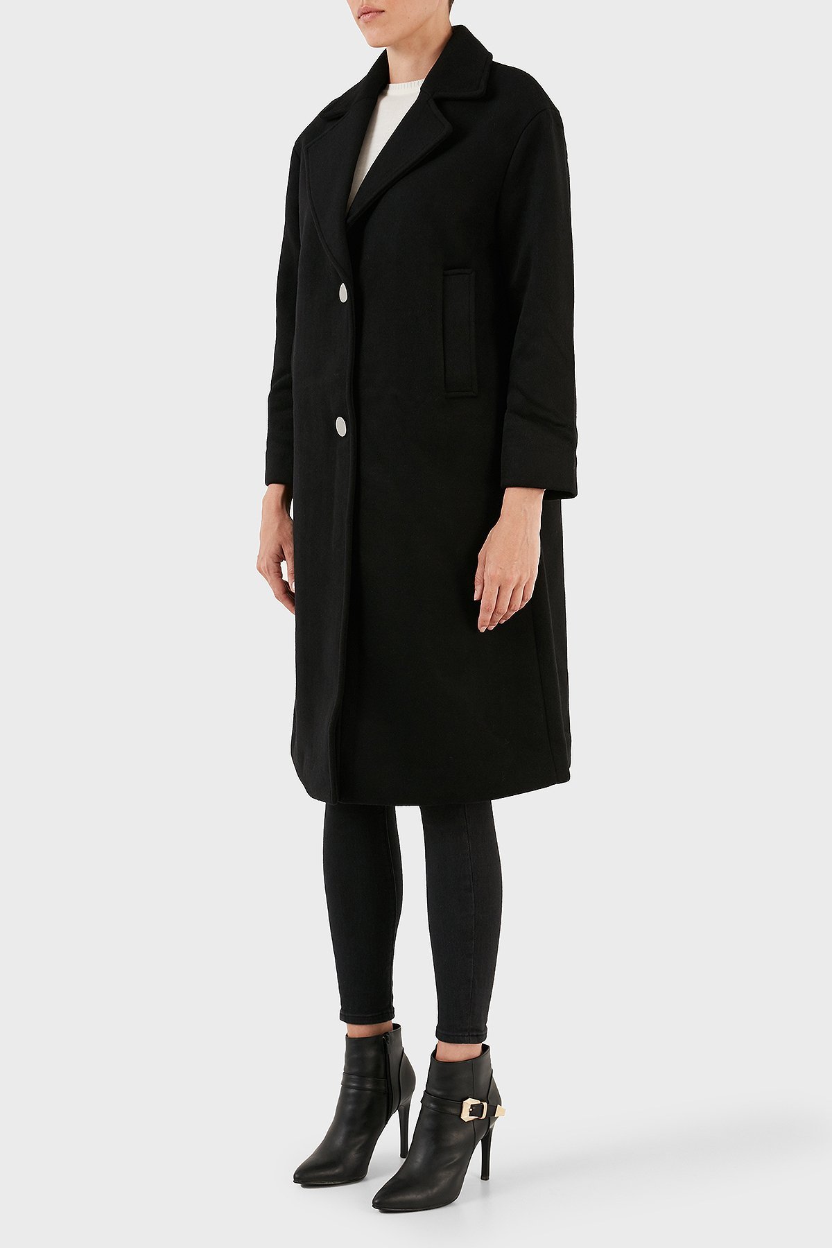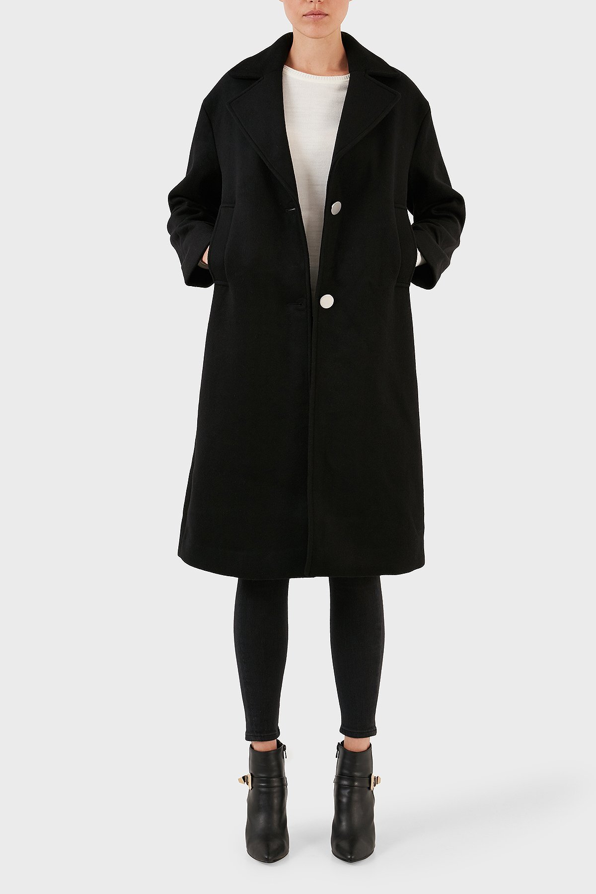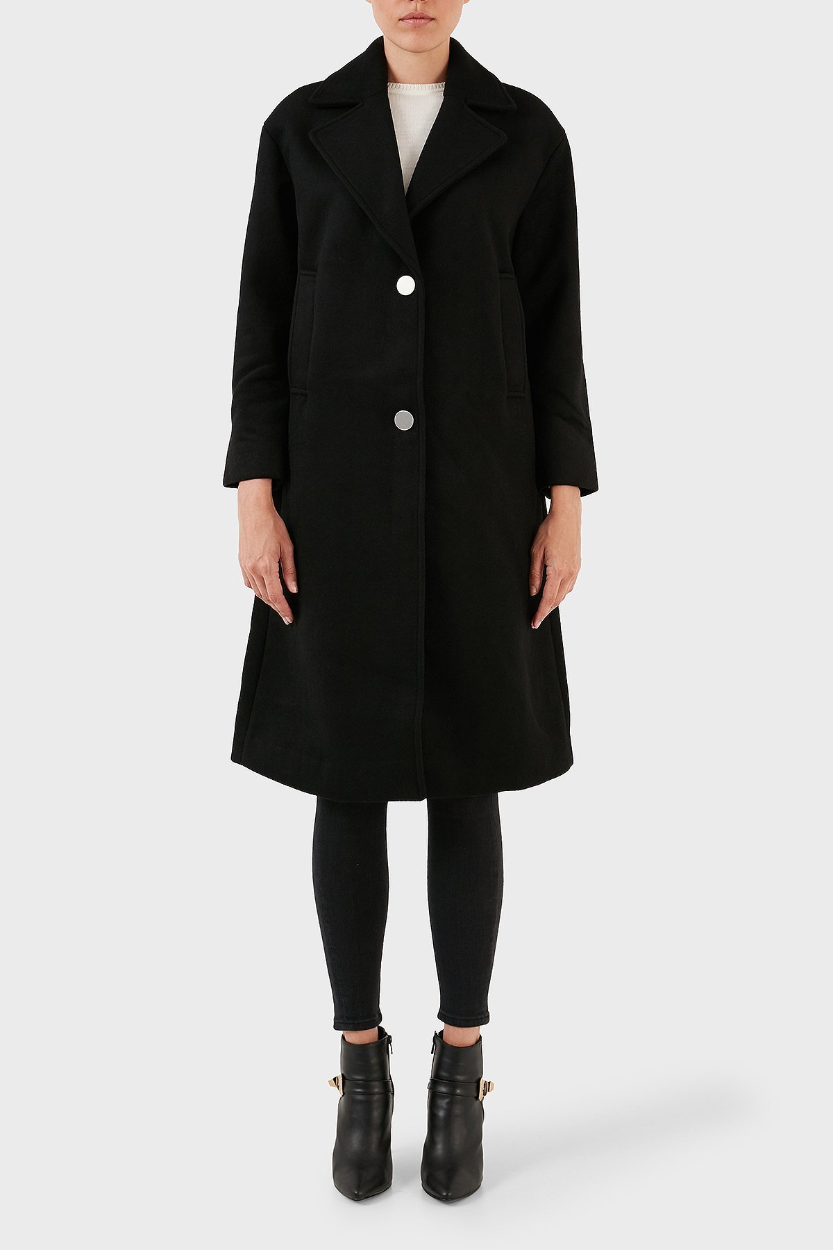 Yünlü Regular Fit Mono Yaka Düğmeli Bayan Kaban 6RYL40 YN8LZ 1200 SİYAH