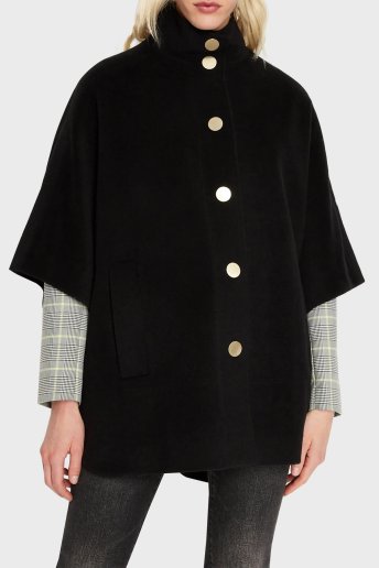 Yünlü Truvakar Kollu Dik Yaka Bayan Panço 6LYK11 YNHZZ 1200 SİYAH