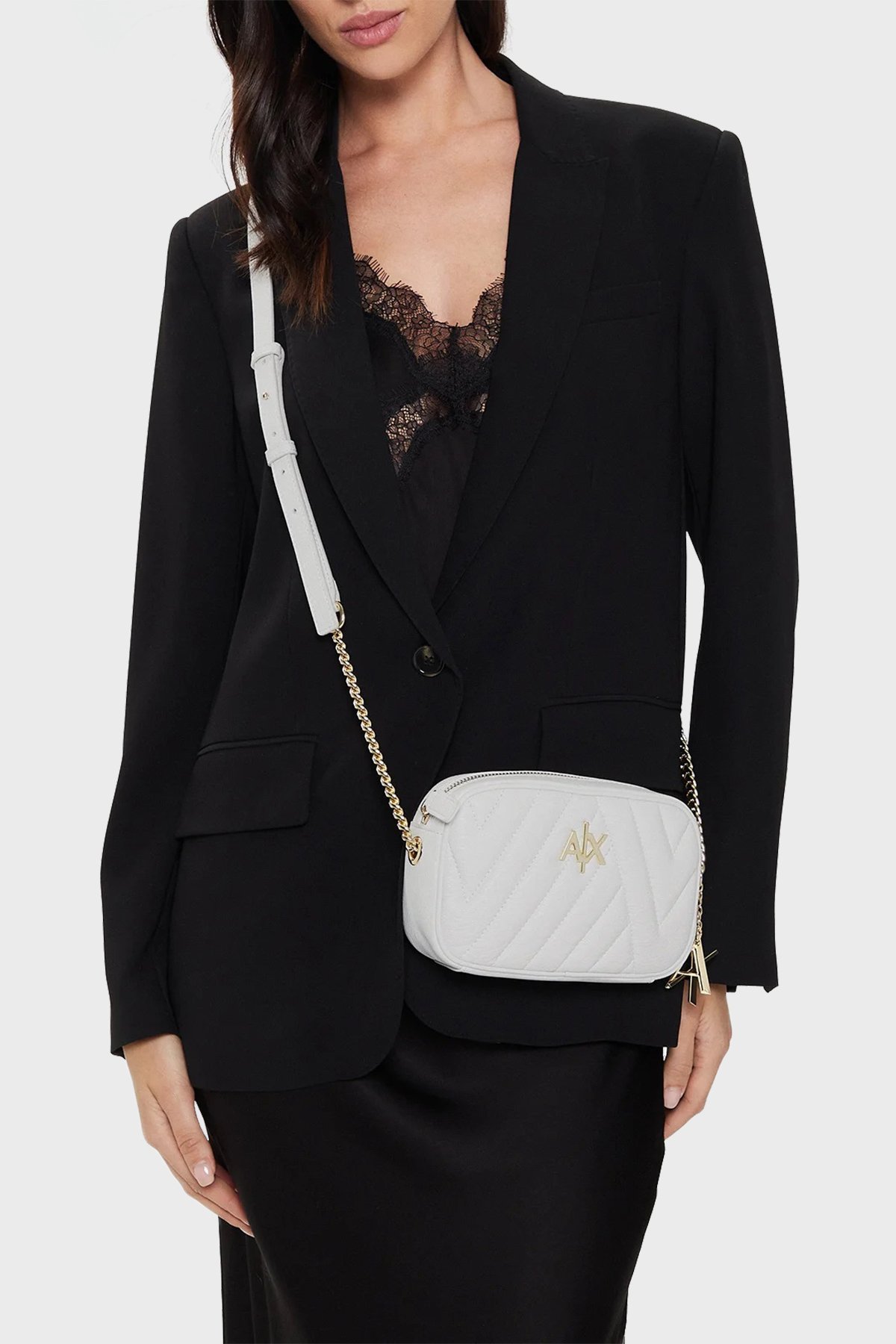 Zincirli Ayarlanabilir Omuz Askılı Metalik Logo Detaylı Bayan Çanta 942855 2F745 47710 BEYAZ
