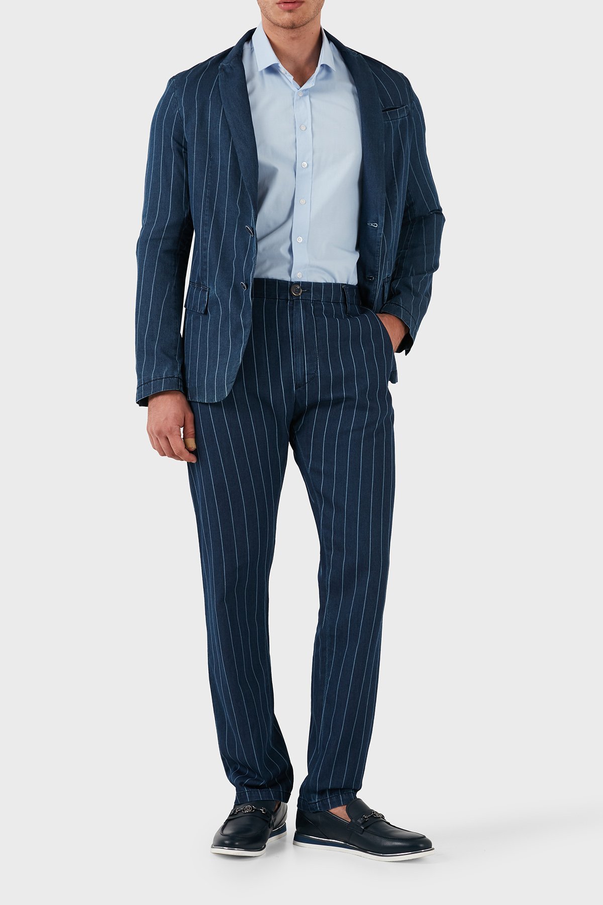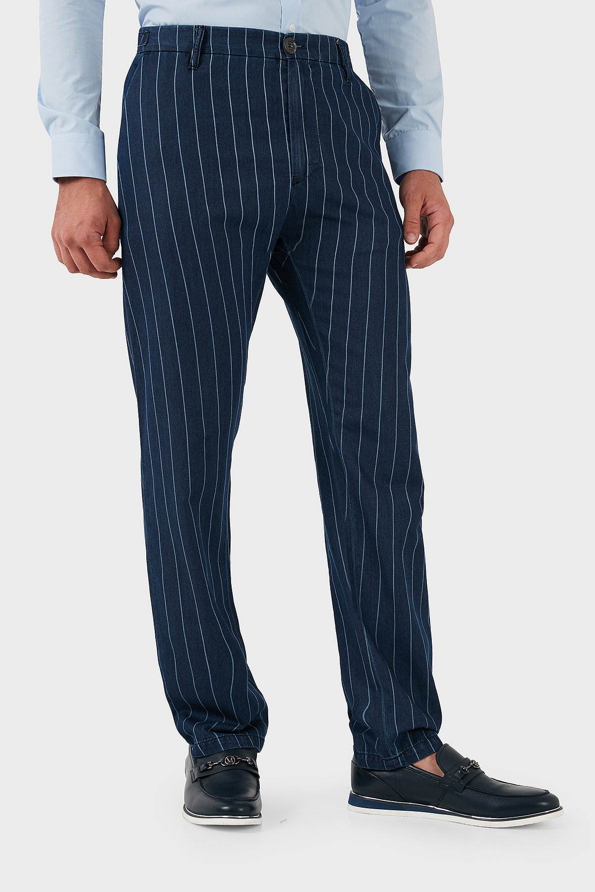 % 100 Pamuklu Çizgili Erkek Pantolon A6P25 1C15 LACİVERT