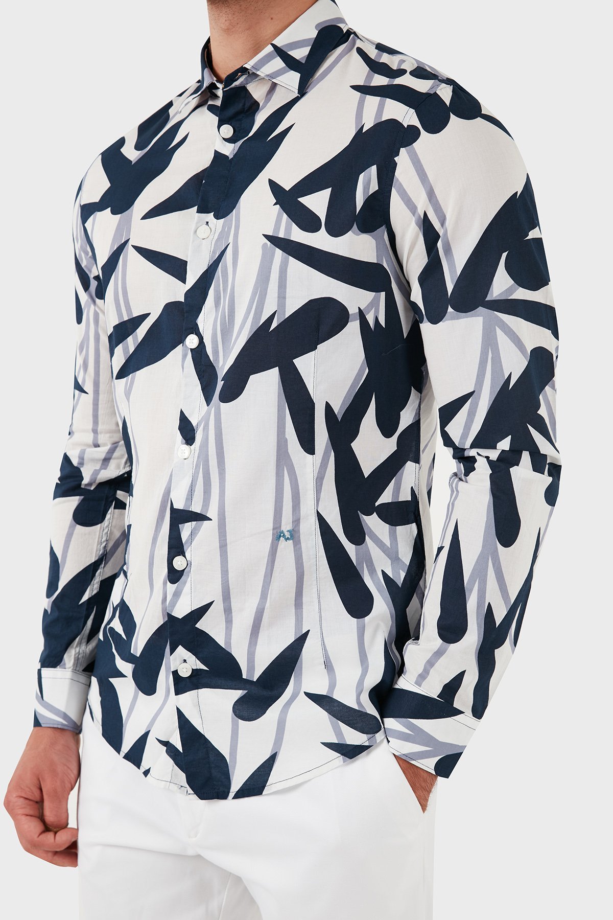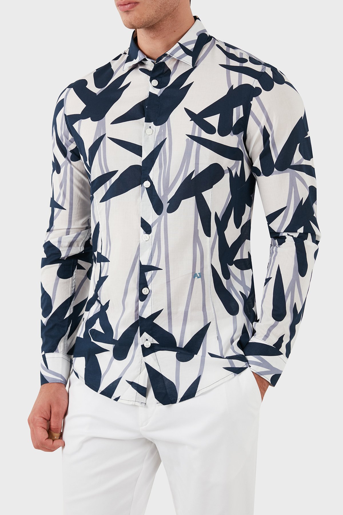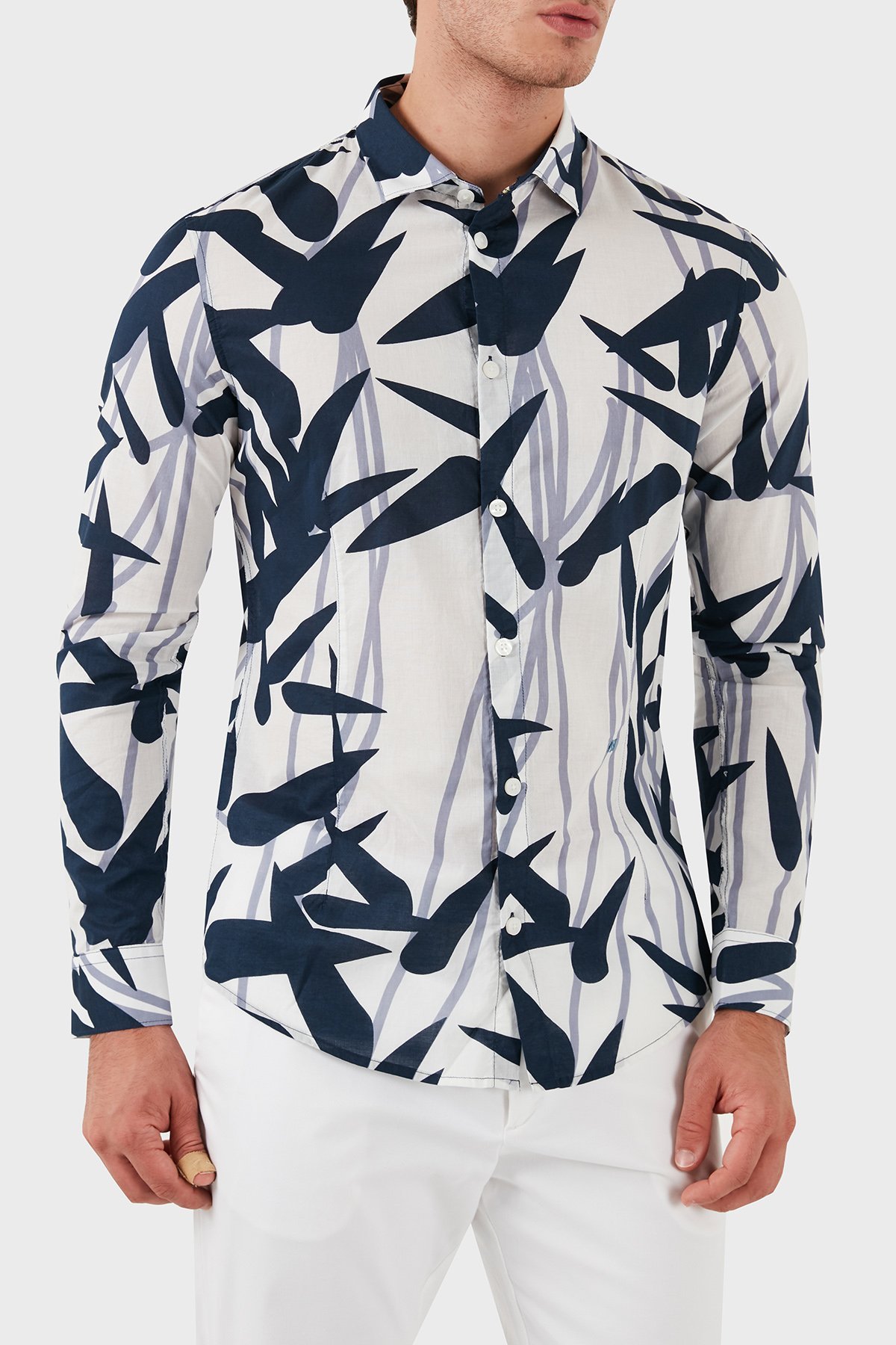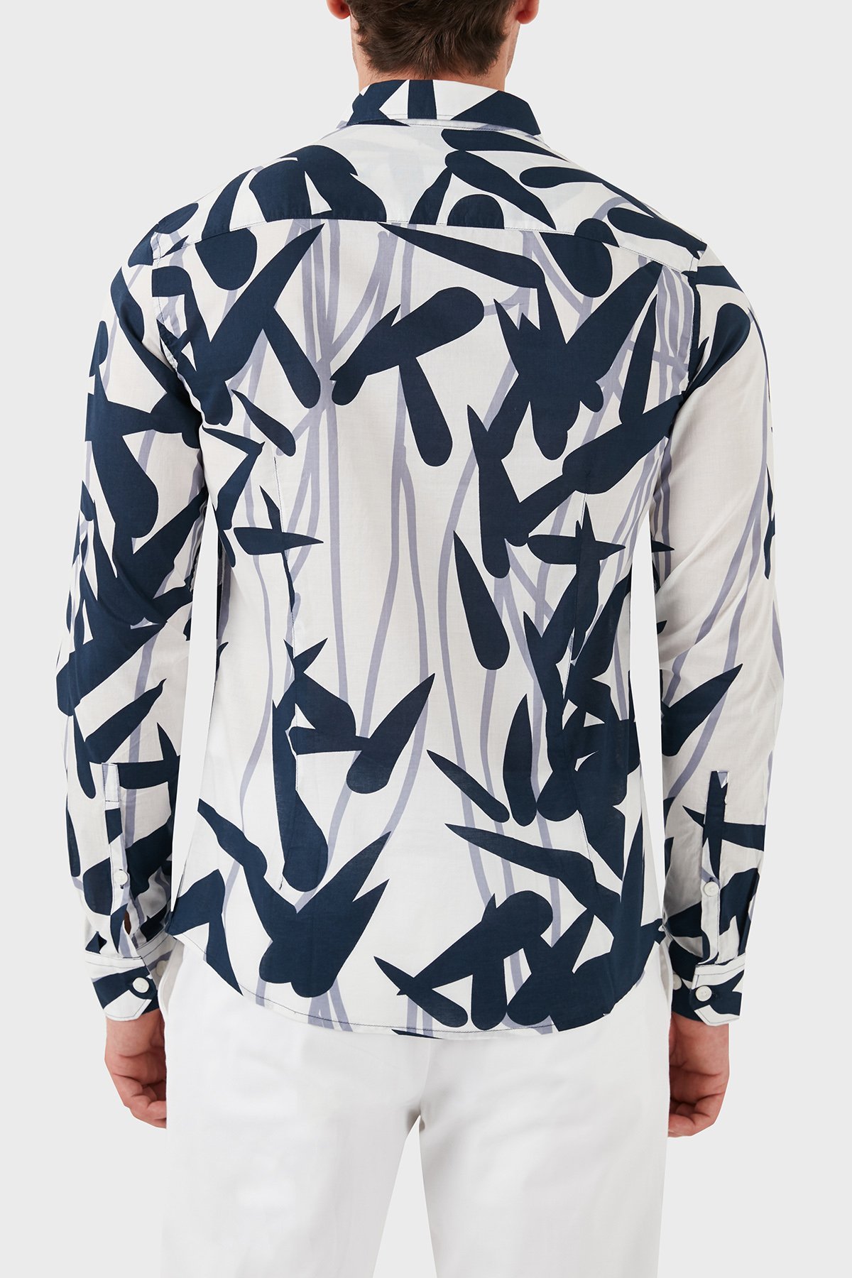 % 100 Pamuklu Desenli Erkek Gömlek A6C52 BKTC LACİVERT-BEYAZ