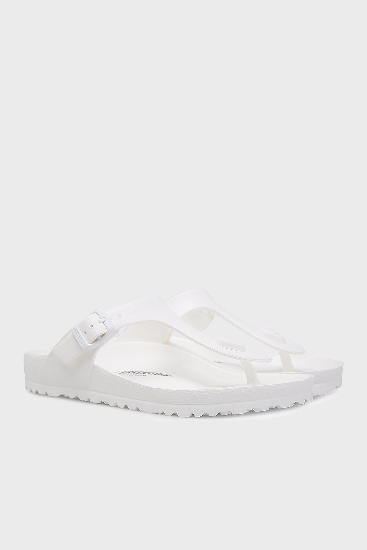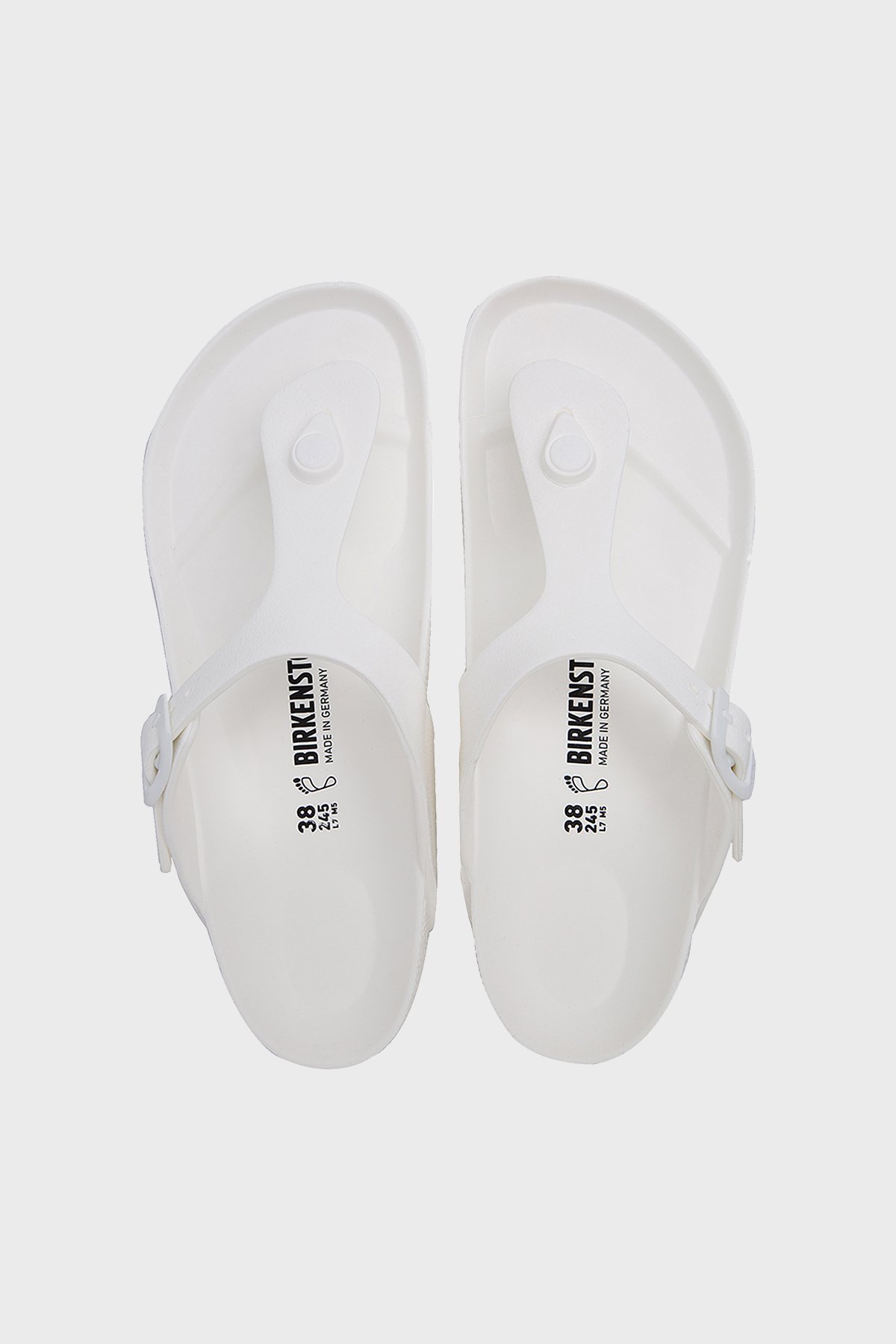 Birkenstock Gizeh Eva koleksiyonu ultra hafif, elastik ve darbelere dayanıklı plastik modelleri ile sauna, yüzme havuzları veya plajlar gibi ıslak alanlar için özel tasarlanmıştır. Yumuşak tabanlı, yıkanabilir ve rengarenk modelleri ile son derece konforlu ve şık bir tercih olacaktır. Plajda da BIRKENSTOCK yanınızda olsun istiyorsanız Eva plaj terliği olarakta sizler için uygun olacaktır. Aynı zamanda ev ortamında ve günlük hayatımızda da rahatlıkla kullanabileceğimiz eva modeli konforu sayesinde ayağınız ile bir bütün haline gelecektir.