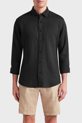 % 100 Keten Comfort Fit Düğmeli Yaka Erkek Gömlek BM25002003MS 111 SİYAH