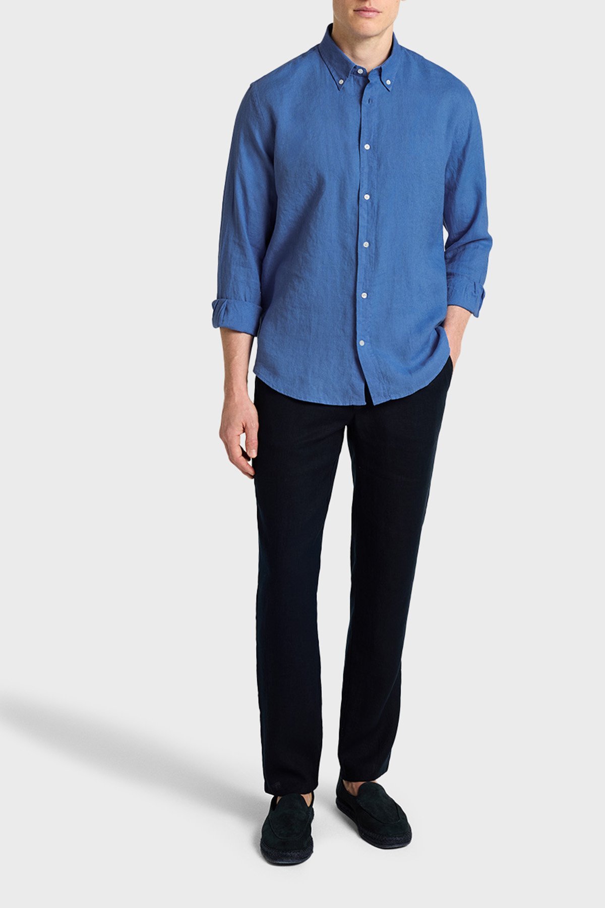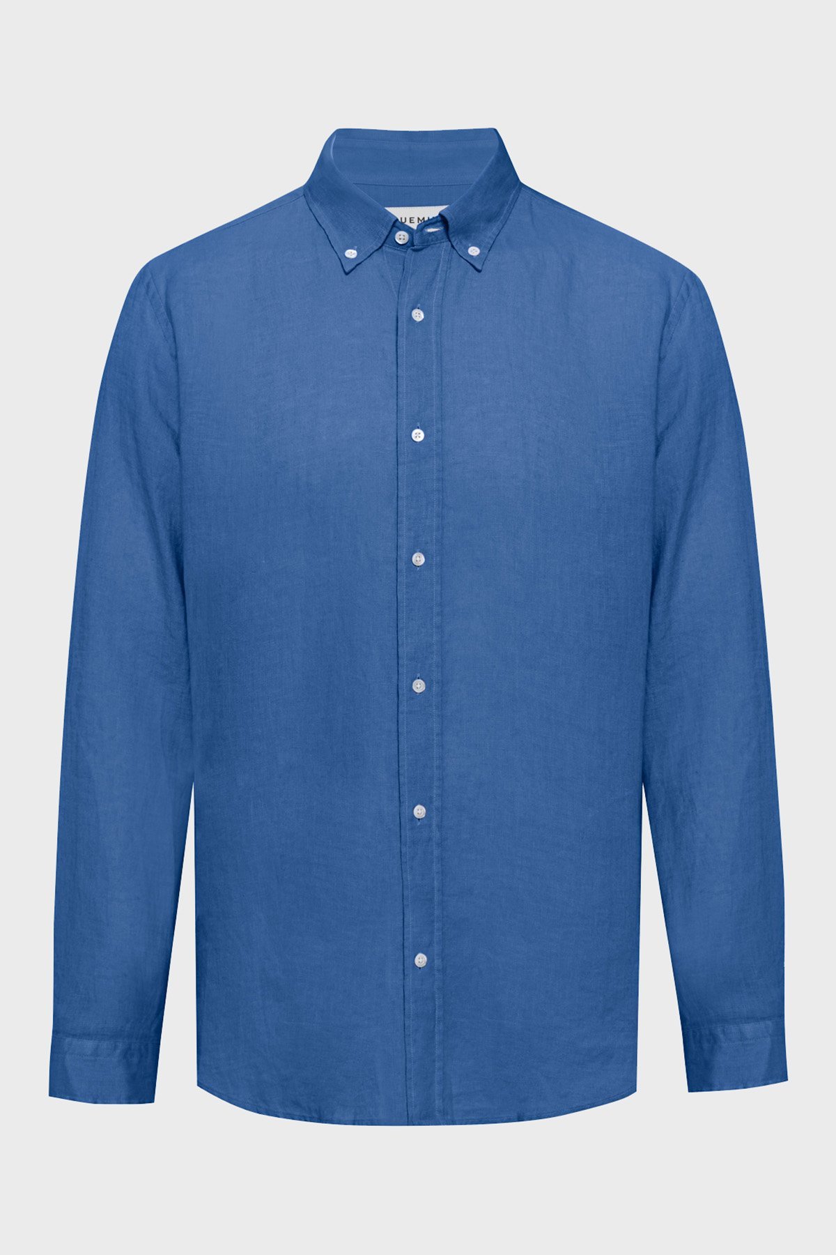 % 100 Keten Comfort Fit Düğmeli Yaka Erkek Gömlek BM25002003MS 1157 MAVİ