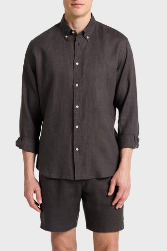 % 100 Keten Comfort Fit Düğmeli Yaka Erkek Gömlek BM25002003MS 1175 ANTRASİT