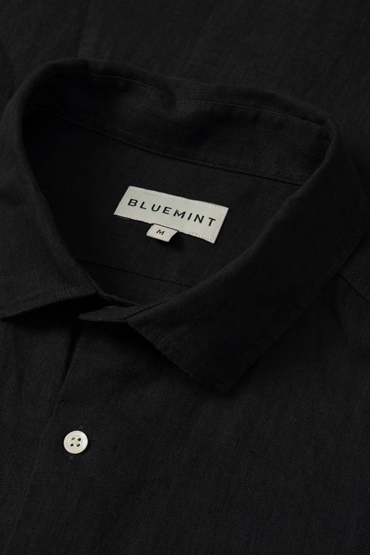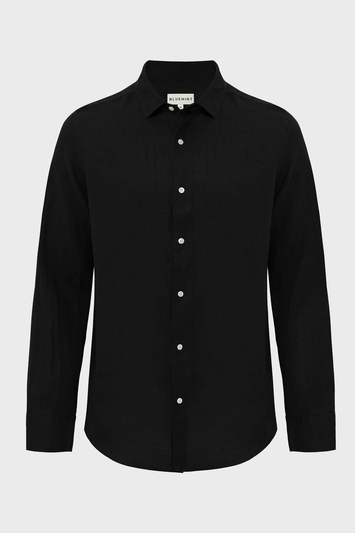 % 100 Keten Comfort Fit Düz Yaka Erkek Gömlek BM25002092MS 111 SİYAH