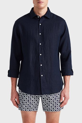 % 100 Keten Comfort Fit Düz Yaka Erkek Gömlek BM25002092MS 155 KOYU LACİVERT