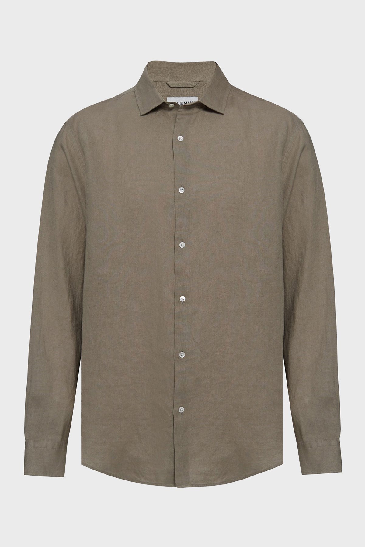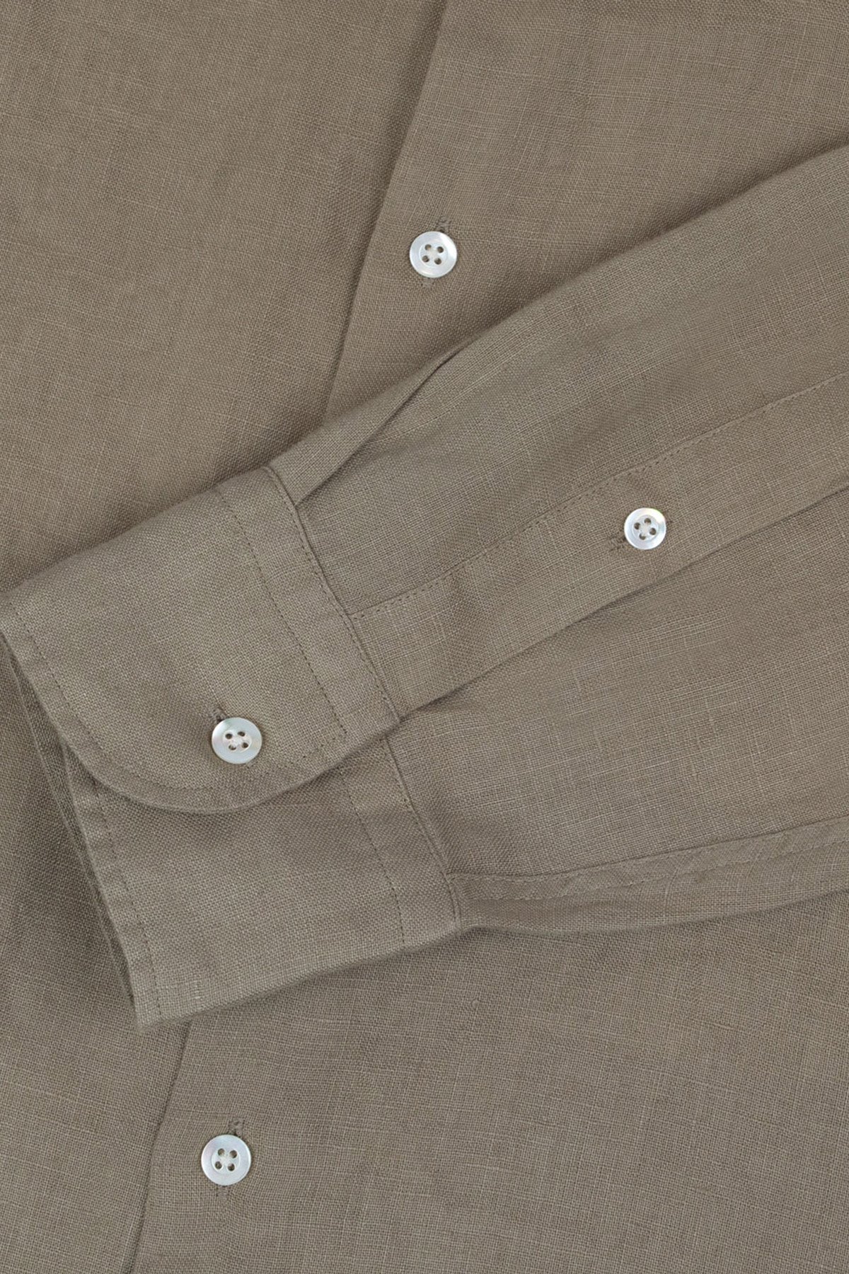 % 100 Keten Comfort Fit Düz Yaka Erkek Gömlek BM25002092MS 836 AÇIK HAKİ
