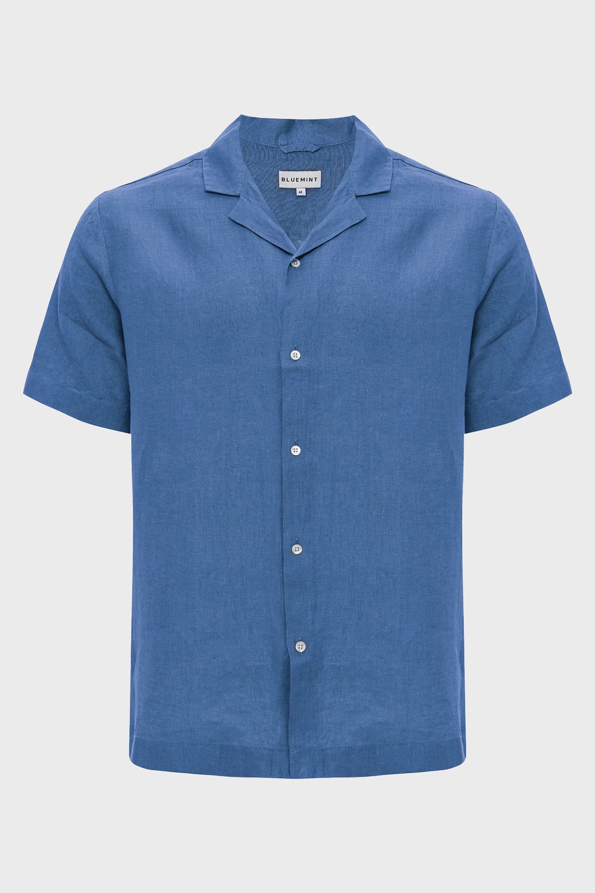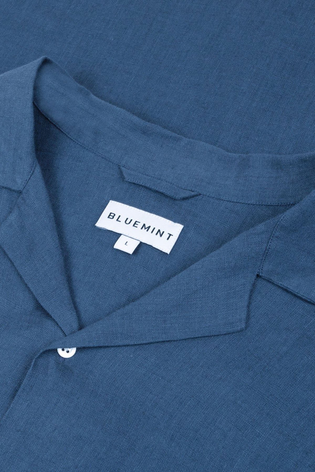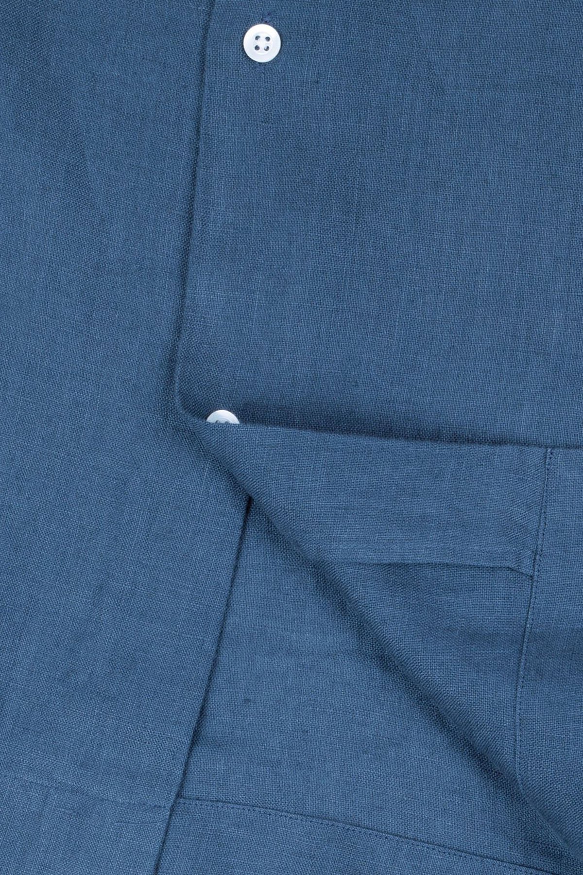 % 100 Keten Comfort Fit Kısa Kollu Apaş Yaka Erkek Gömlek BM25002107MS 1157 MAVİ