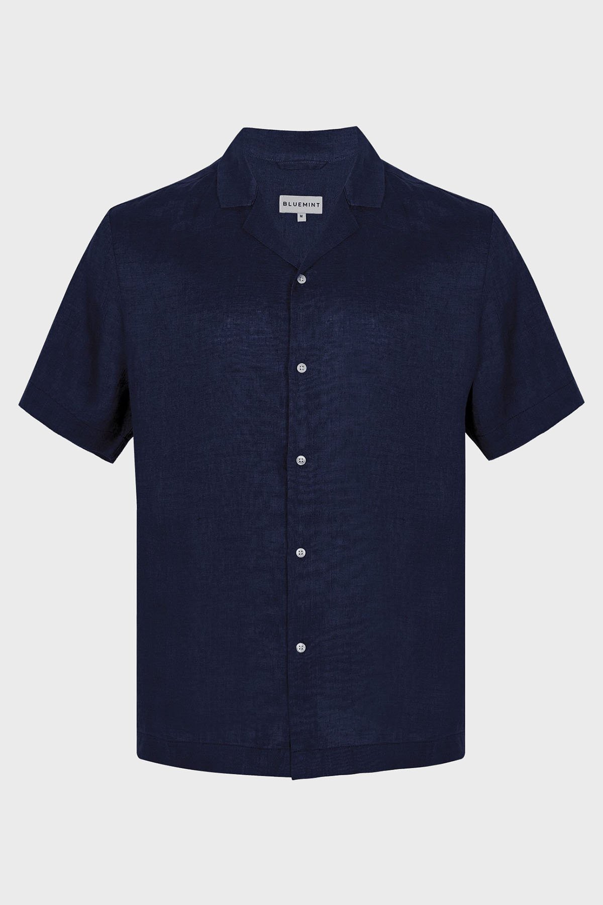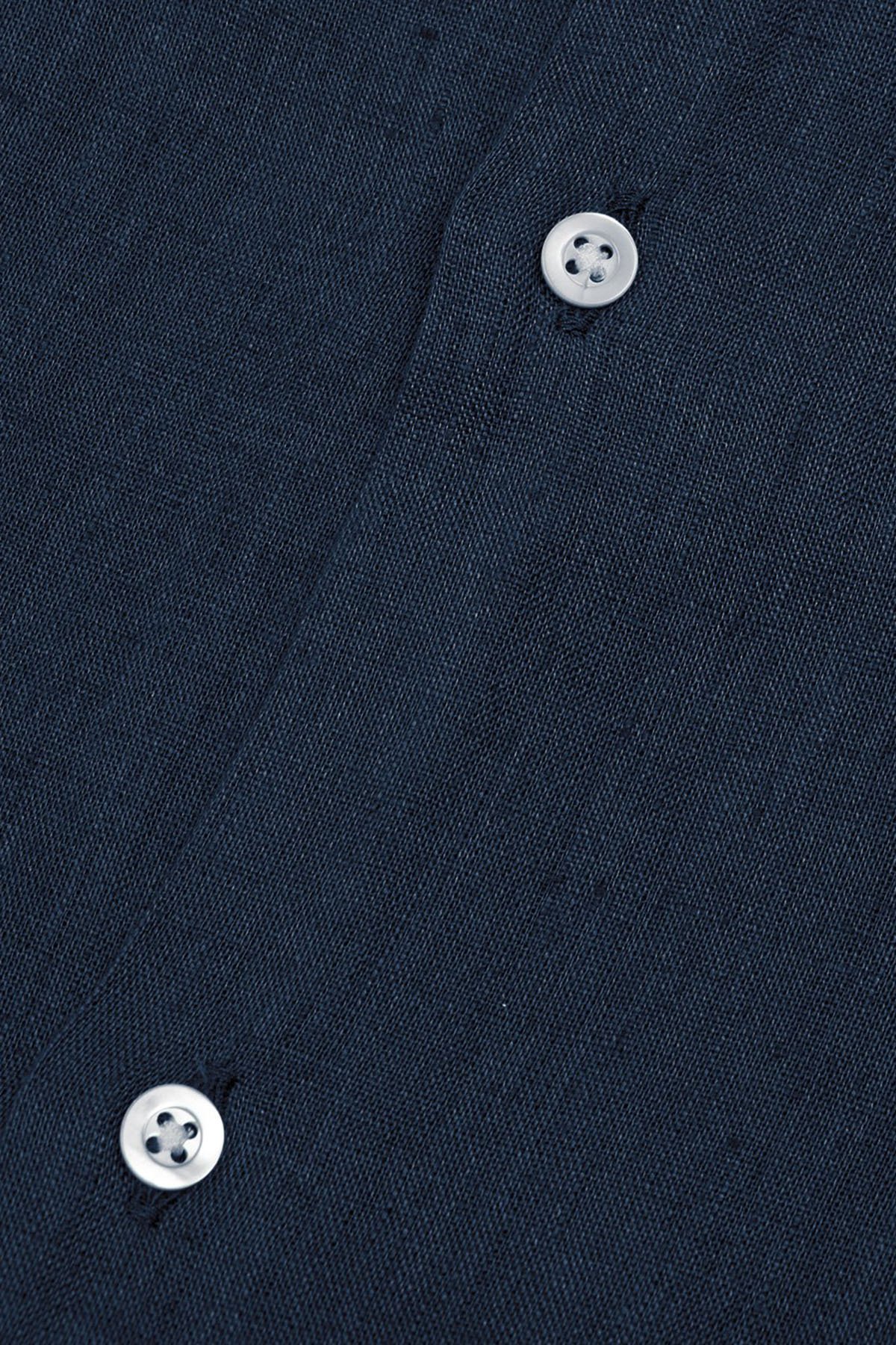 % 100 Keten Comfort Fit Kısa Kollu Apaş Yaka Erkek Gömlek BM25002107MS 155 LACİVERT