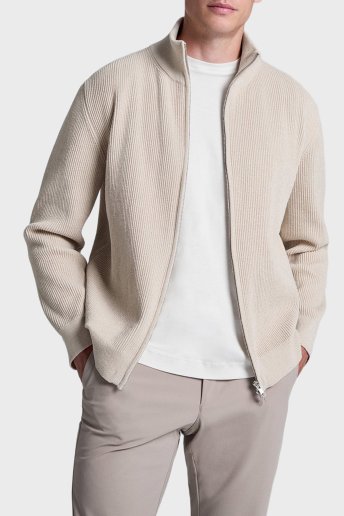 Brian Comfort Fit Dik Yaka Fermuarlı Fitilli Erkek Hırka BM25020676MW 1239 KREM