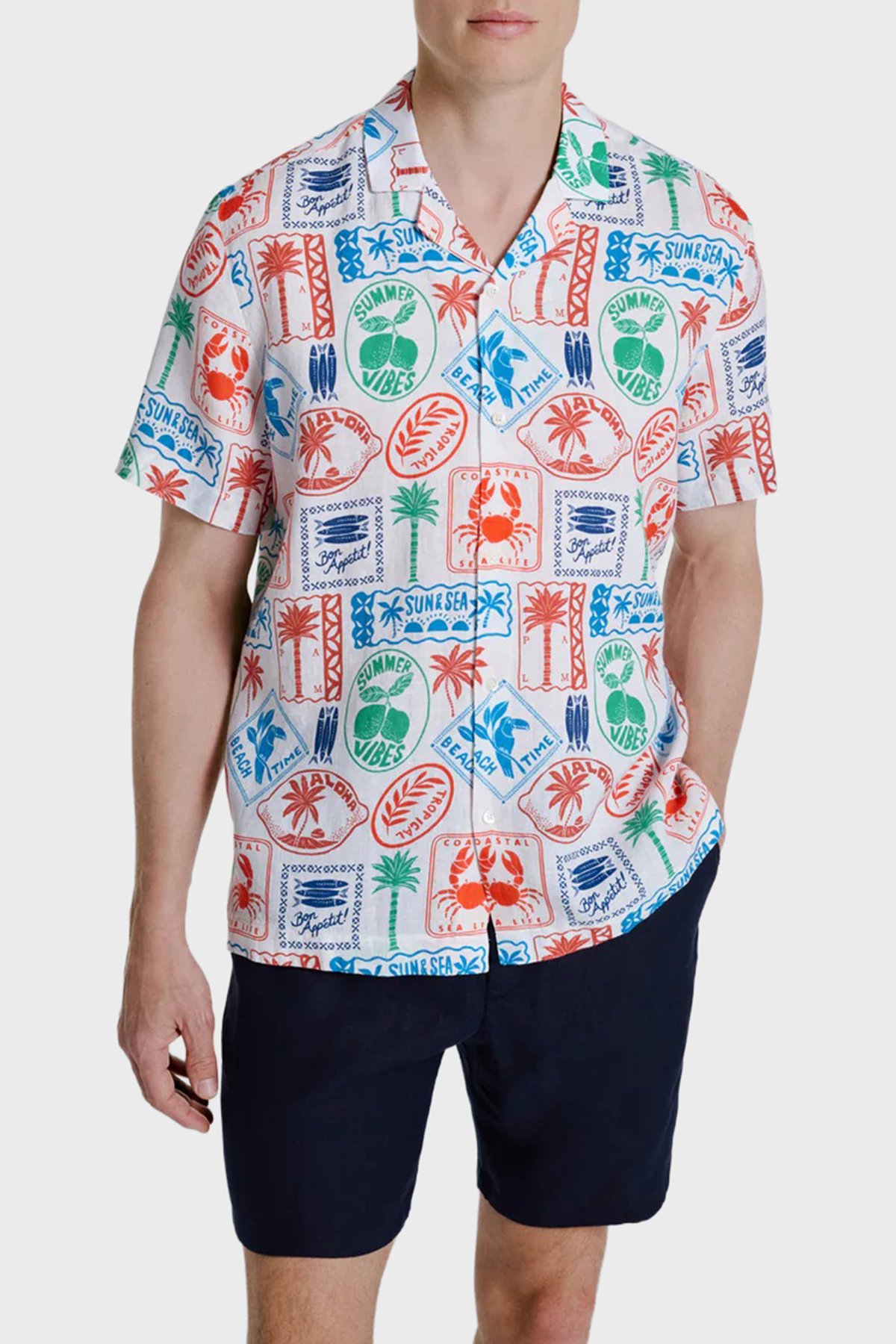 Comfort Desenli % 100 Keten Kısa Kollu Erkek Gömlek MARSPRINT 1284 ÇOK RENKLİ