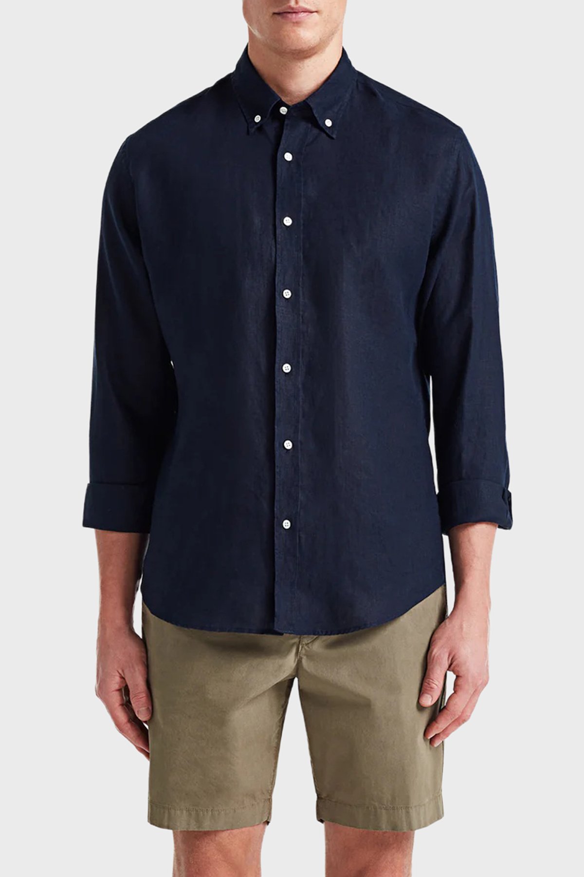 Comfort Düğmeli Yaka Uzun Kollu Keten Erkek Gömlek MARTIN 155 LACİVERT