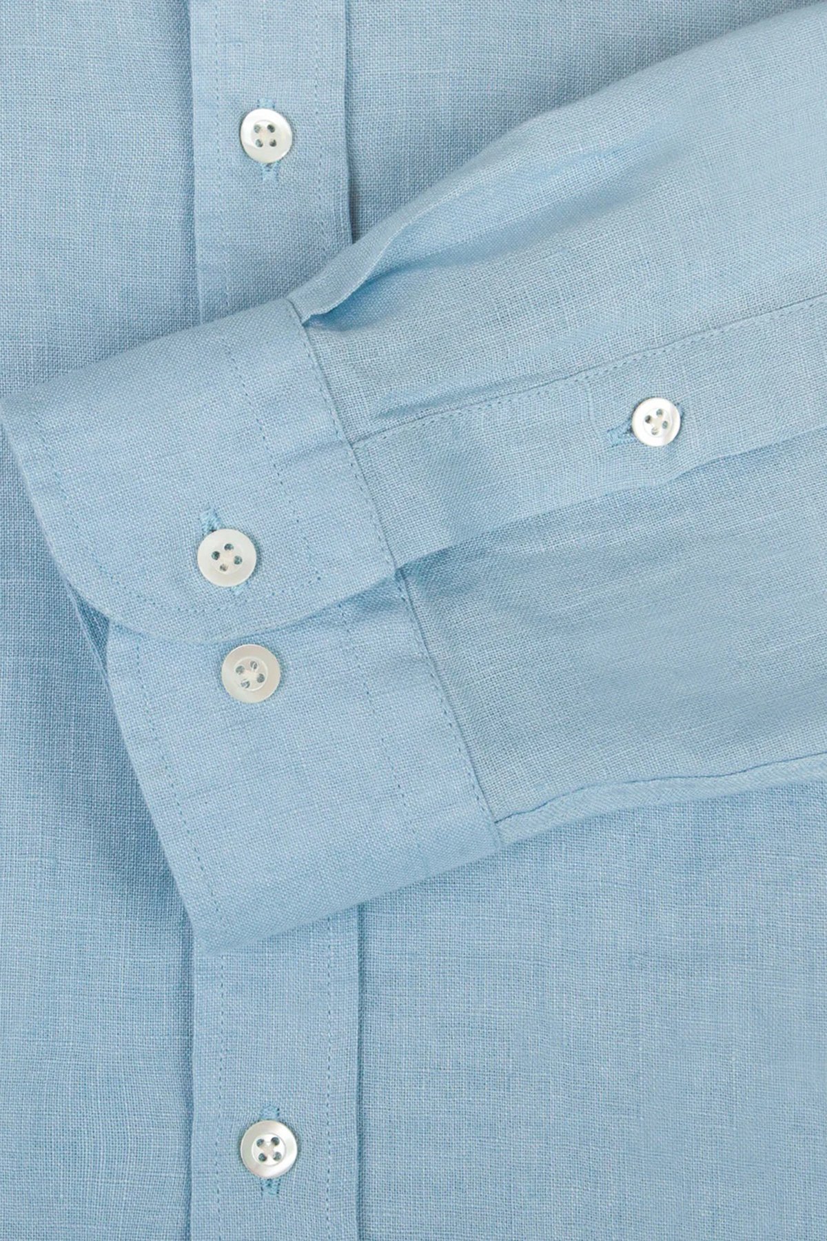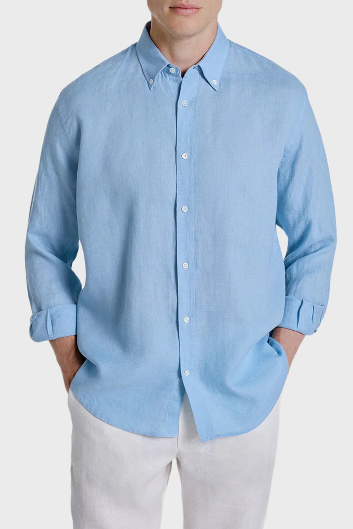 Comfort Düğmeli Yaka Uzun Kollu Keten Erkek Gömlek MARTIN 318 MAVİ