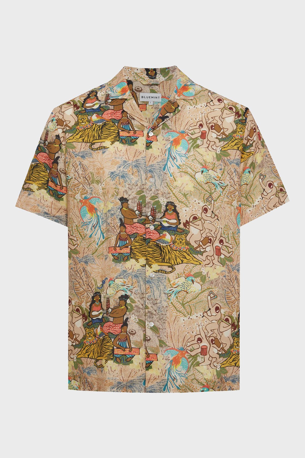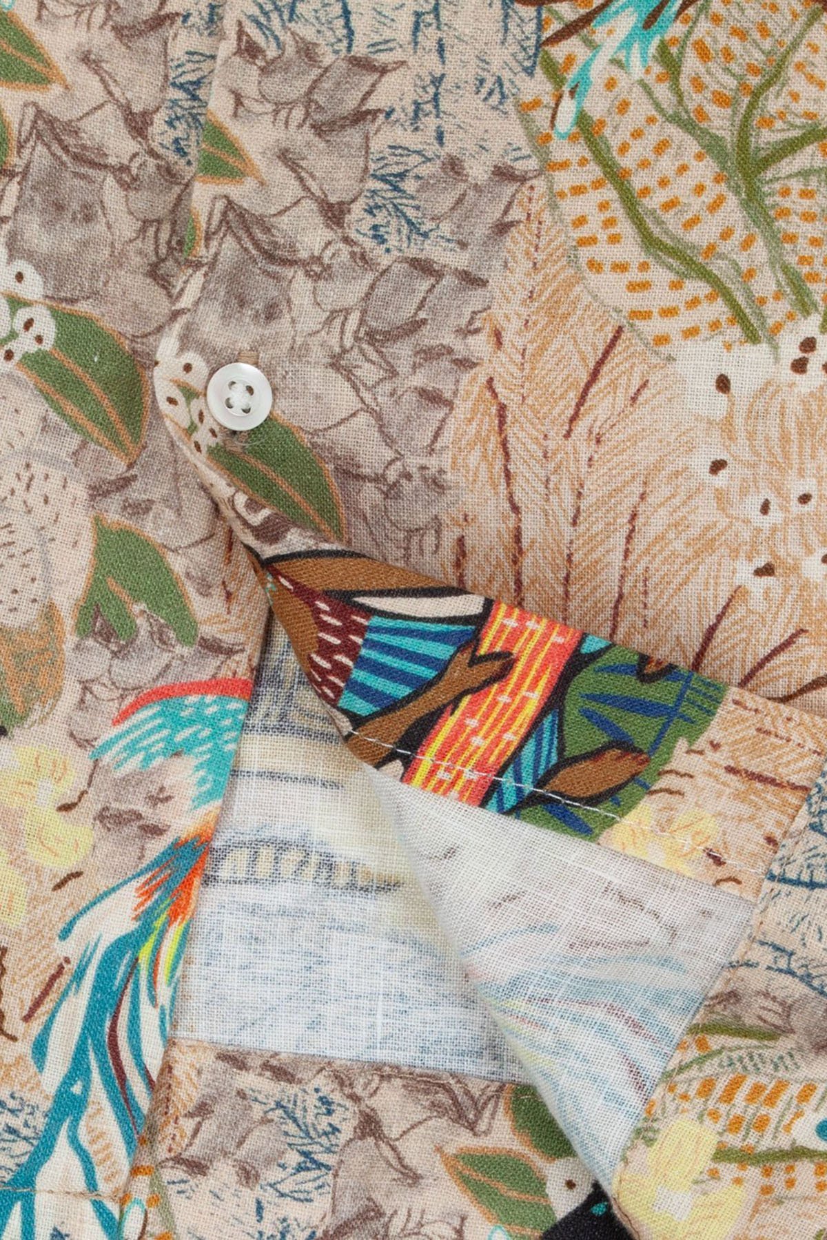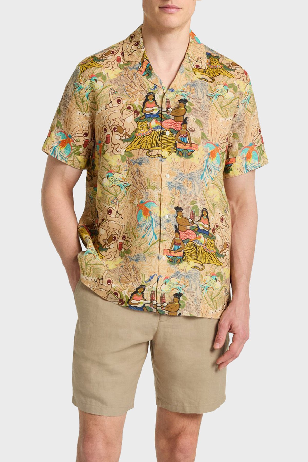 Desenli % 100 Keten Comfort Fit Kısa Kollu Apaş Yaka Erkek Gömlek BM25002135MS 1156 EKRU