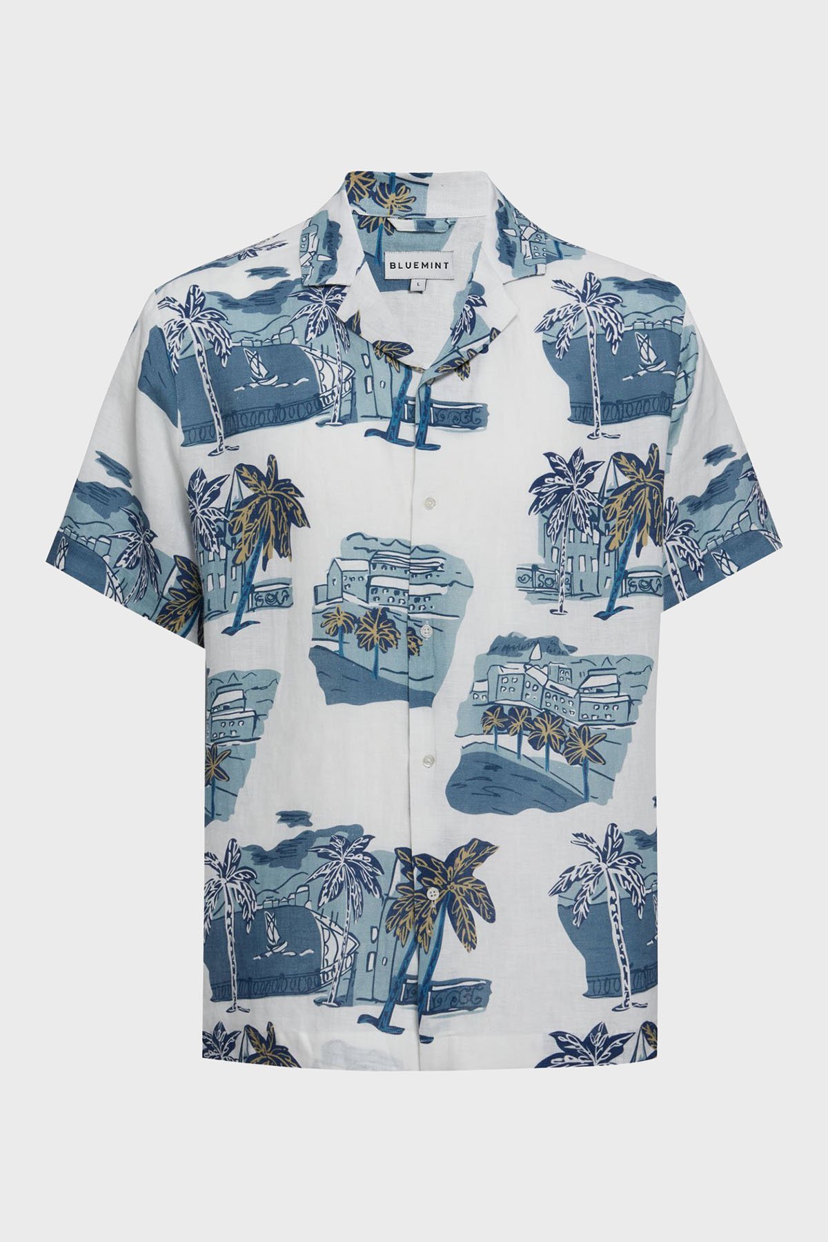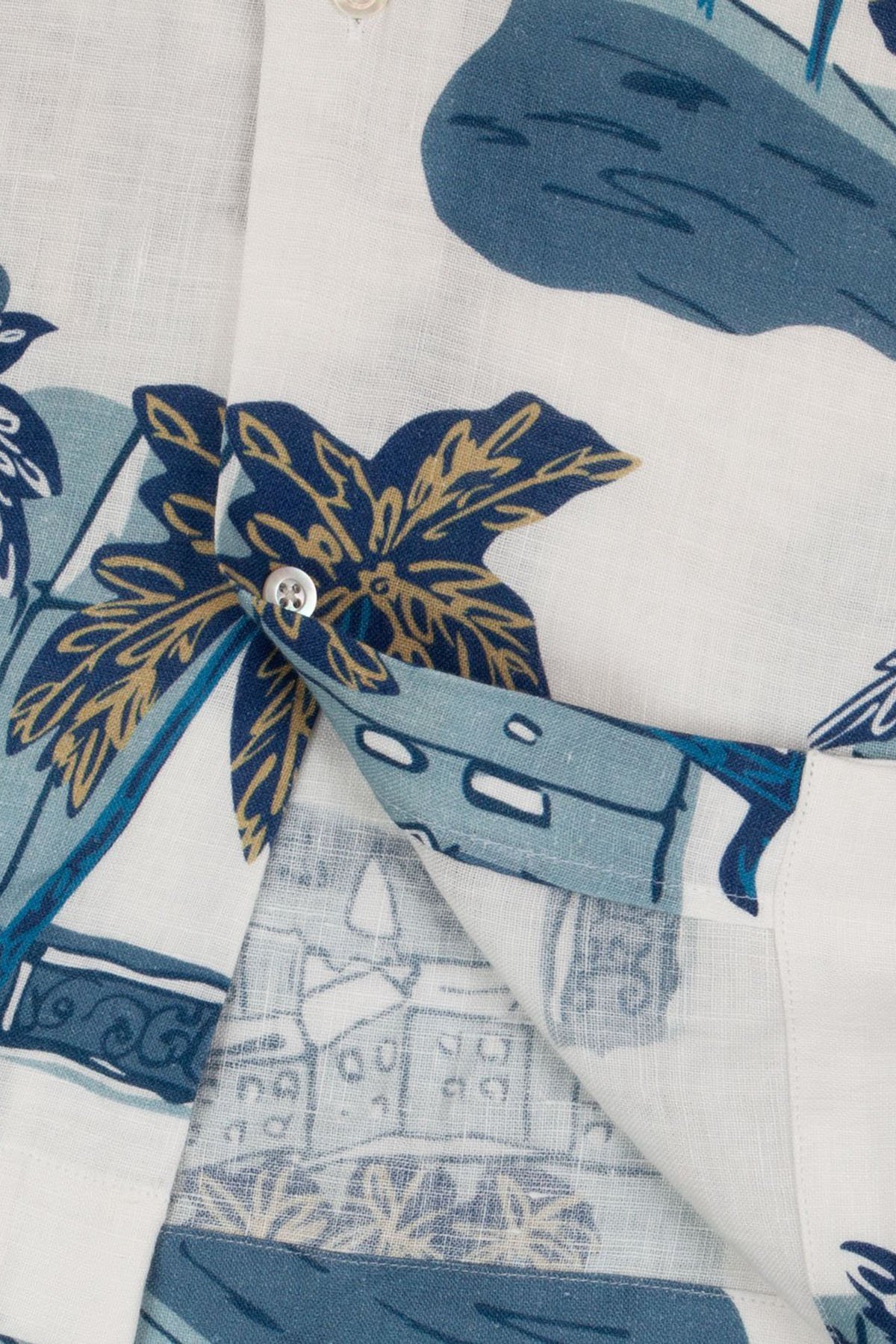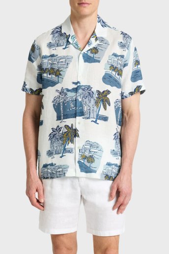 Desenli % 100 Keten Comfort Fit Kısa Kollu Apaş Yaka Erkek Gömlek BM25002135MS 1176 BEYAZ