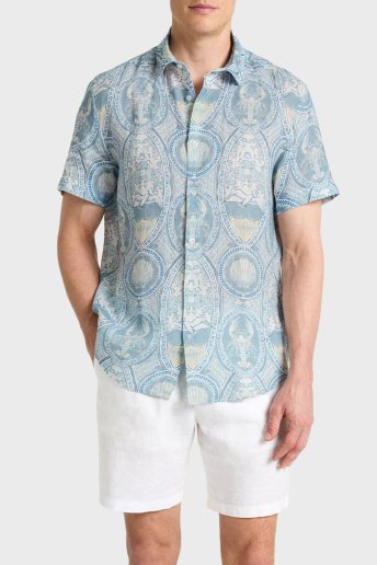 Desenli % 100 Keten Kısa Kollu Düz Yaka Erkek Gömlek BM25002294MS 1129 MAVİ