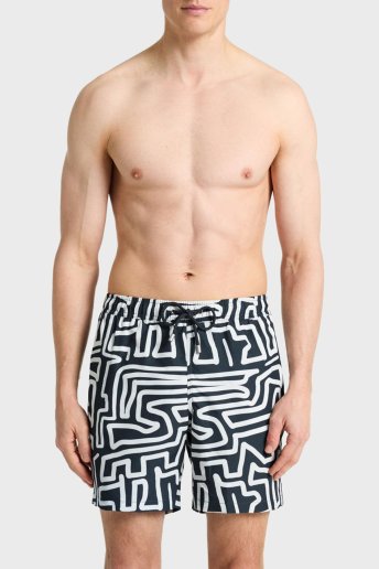 Desenli File Astarlı Regular Fit Hızlı Kuruyan Cepli Erkek Mayo Short BM25003011MS 1139 SİYAH-BEYAZ