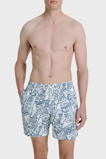 Desenli Hızlı Kuruyan Erkek Deniz Şortu ARTHUS1 302 BEYAZ-LACİVERT
