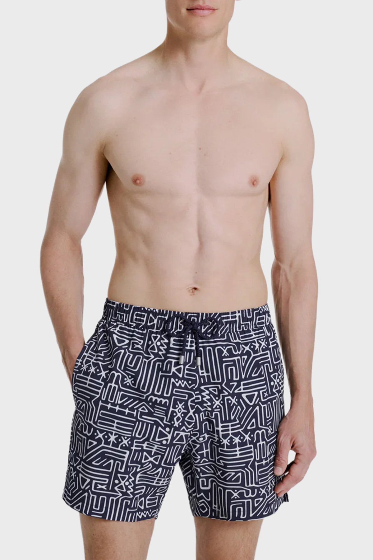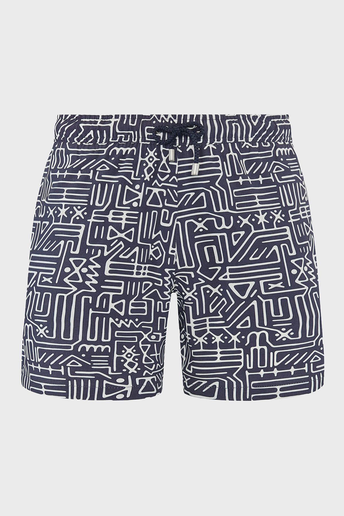 Desenli Hızlı Kuruyan Erkek Deniz Şortu ARTHUSSTRE1 310 LACİVERT-BEYAZ