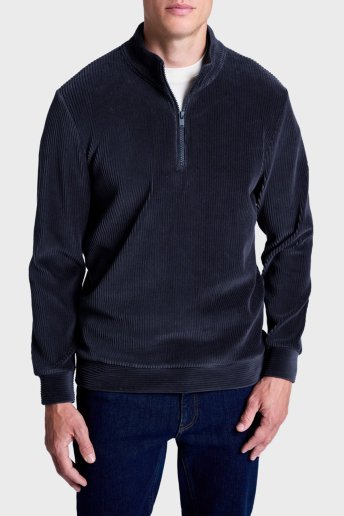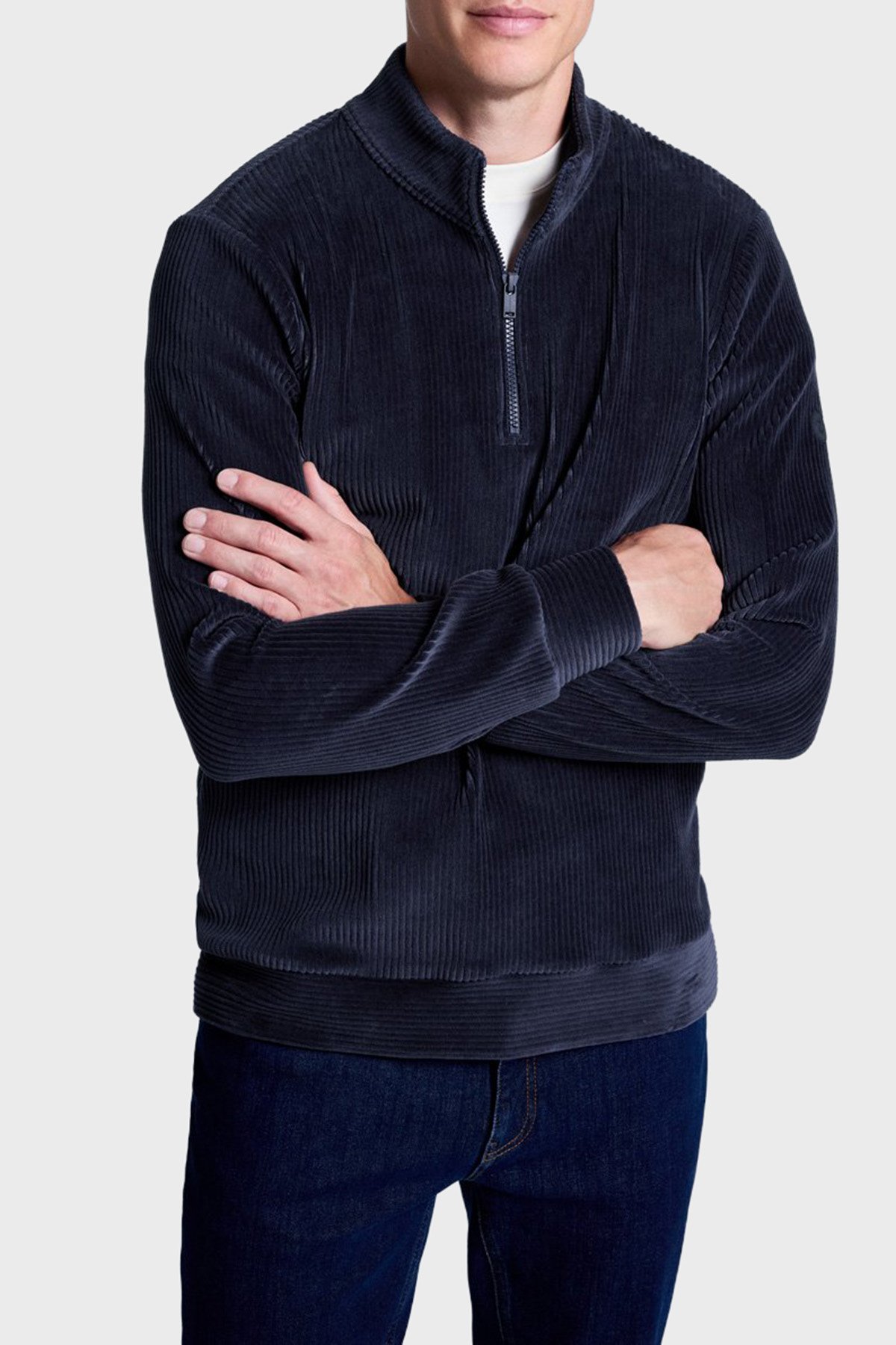 Fitilli Pamuklu Comfort Fit Yarım Fermuarlı Dik Yaka Erkek Sweat BM25019345MW 155 LACİVERT