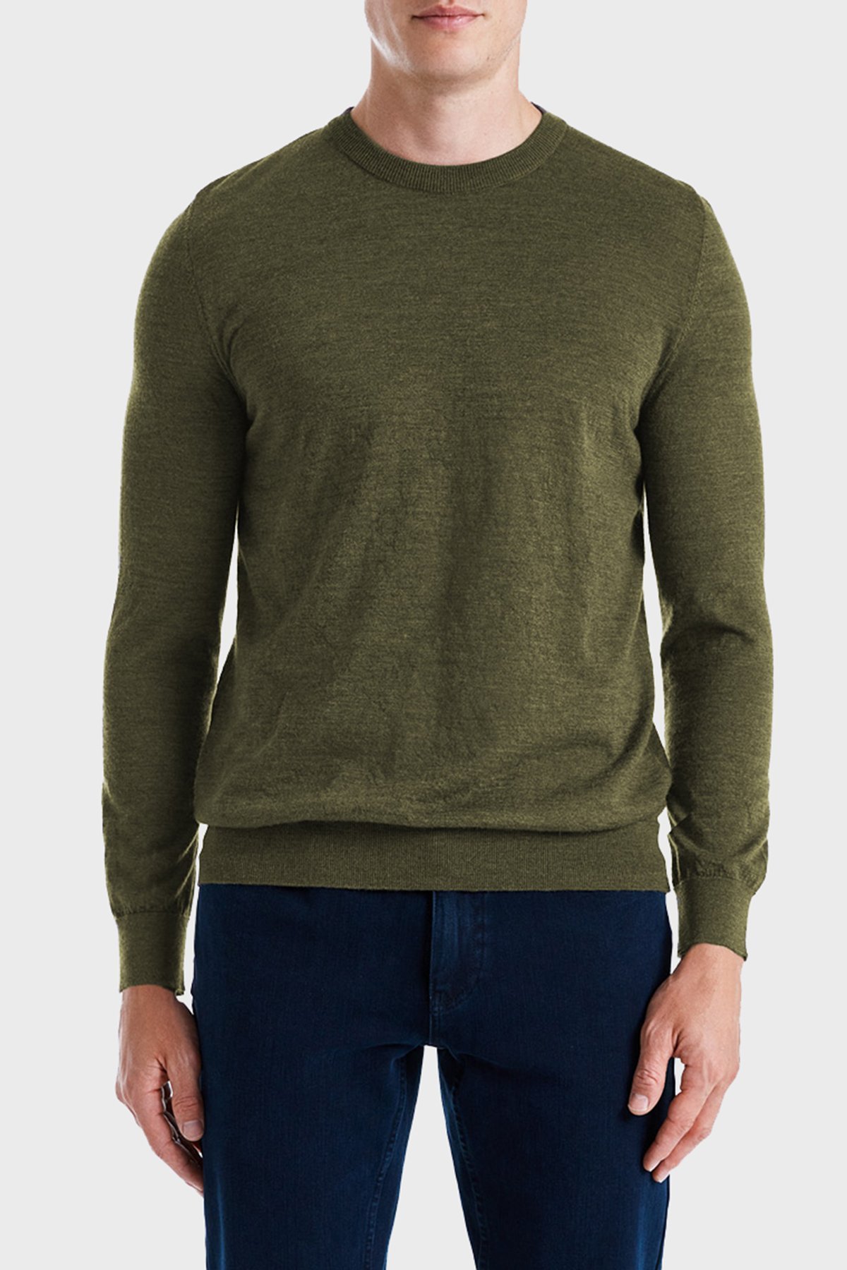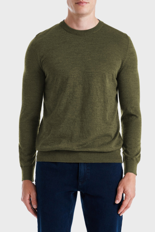 Frank % 100 Yün Regular Fit Bisiklet Yaka Erkek Kazak BM2420101MW 979 Olive Melanj