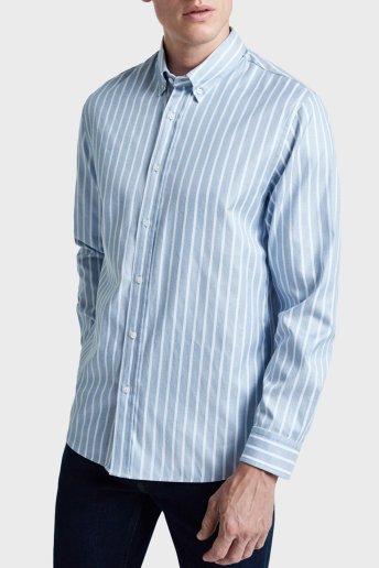 Harold % 100 Pamuklu Çizgili Comfort Fit Düğmeli Yaka Erkek Gömlek BM24002472MW 651 MAVİ-BEYAZ