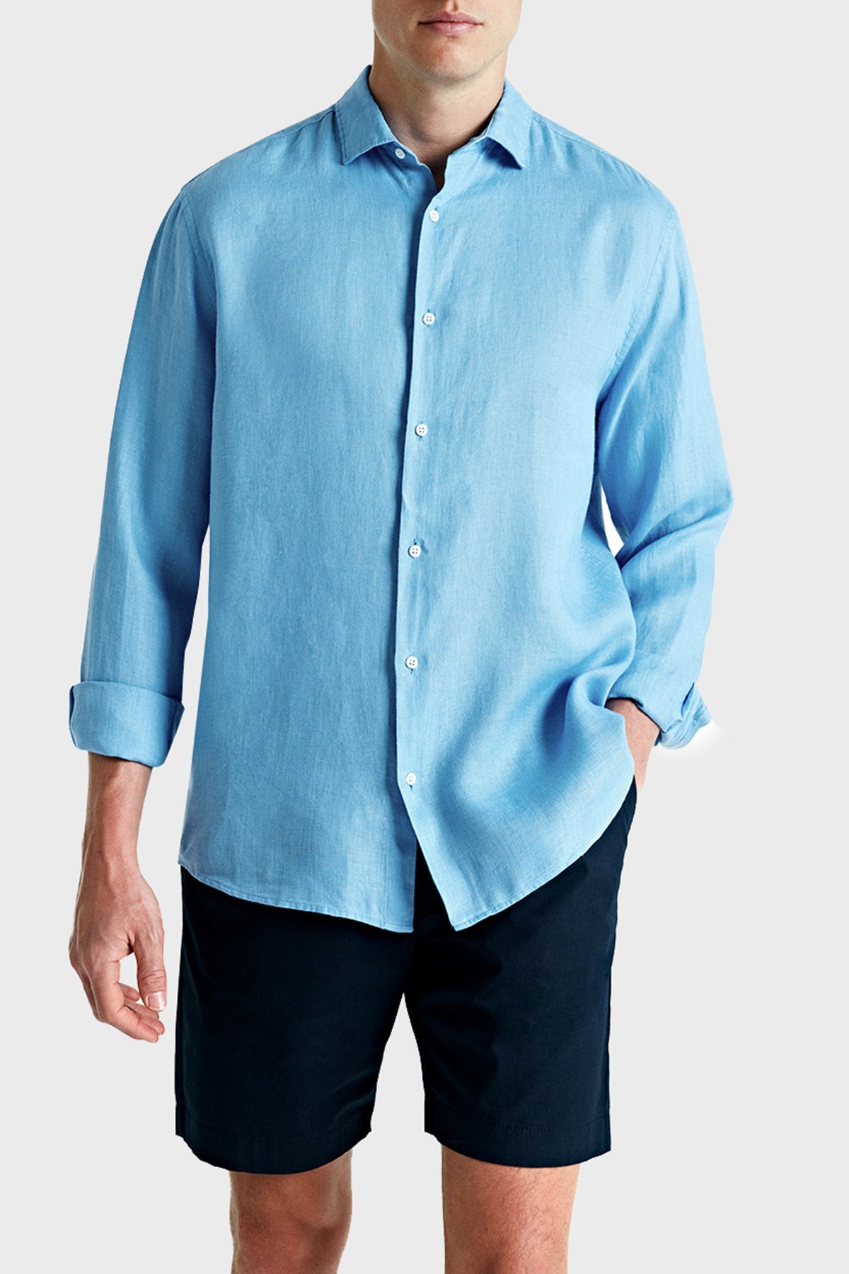Luca % 100 Keten Comfort Fit Erkek Gömlek BM24002092MS 1003 MAVİ