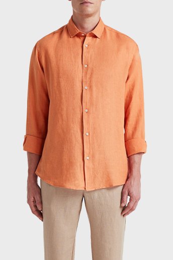 Luca % 100 Keten Uzun Kollu Comfort Fit Erkek Gömlek BM23002092MS 937 TURUNCU