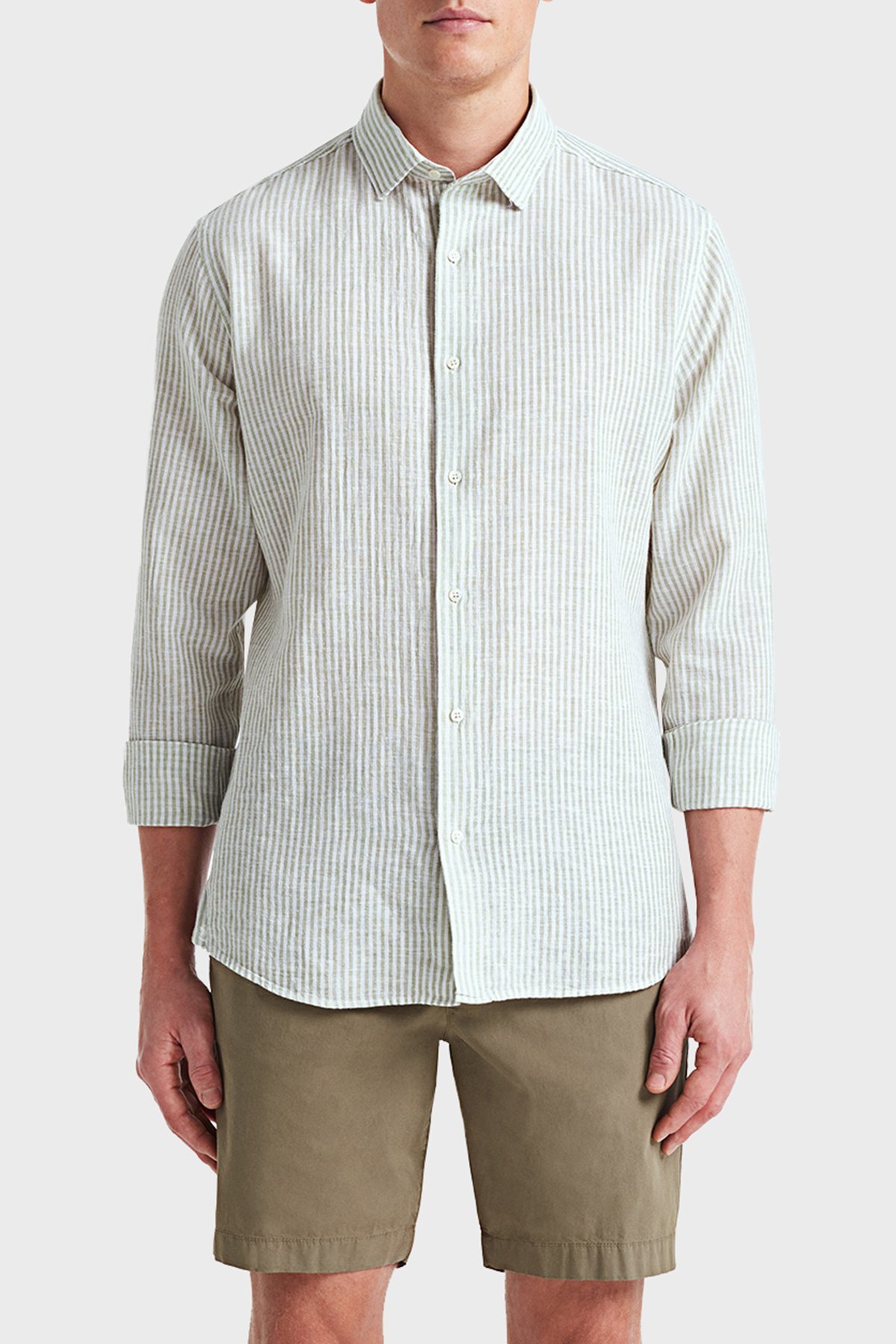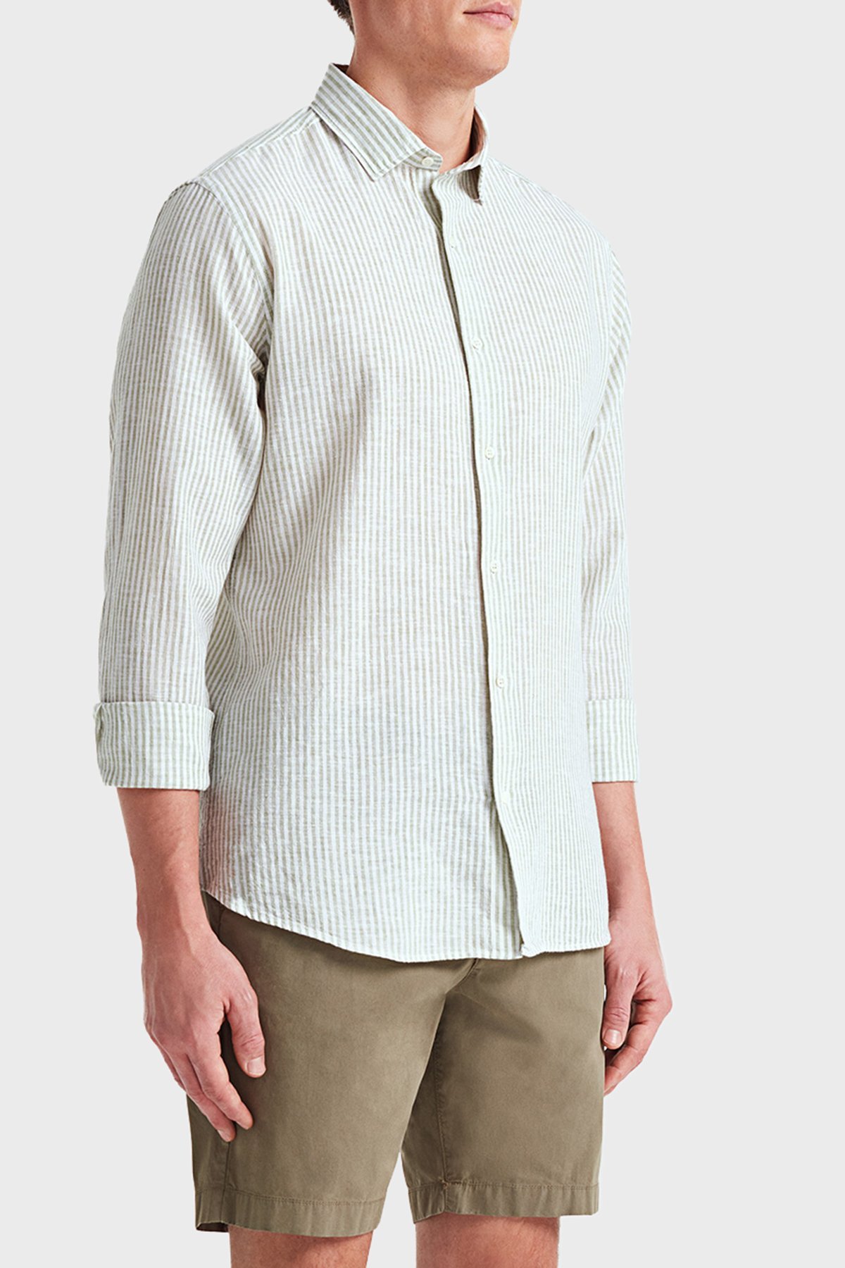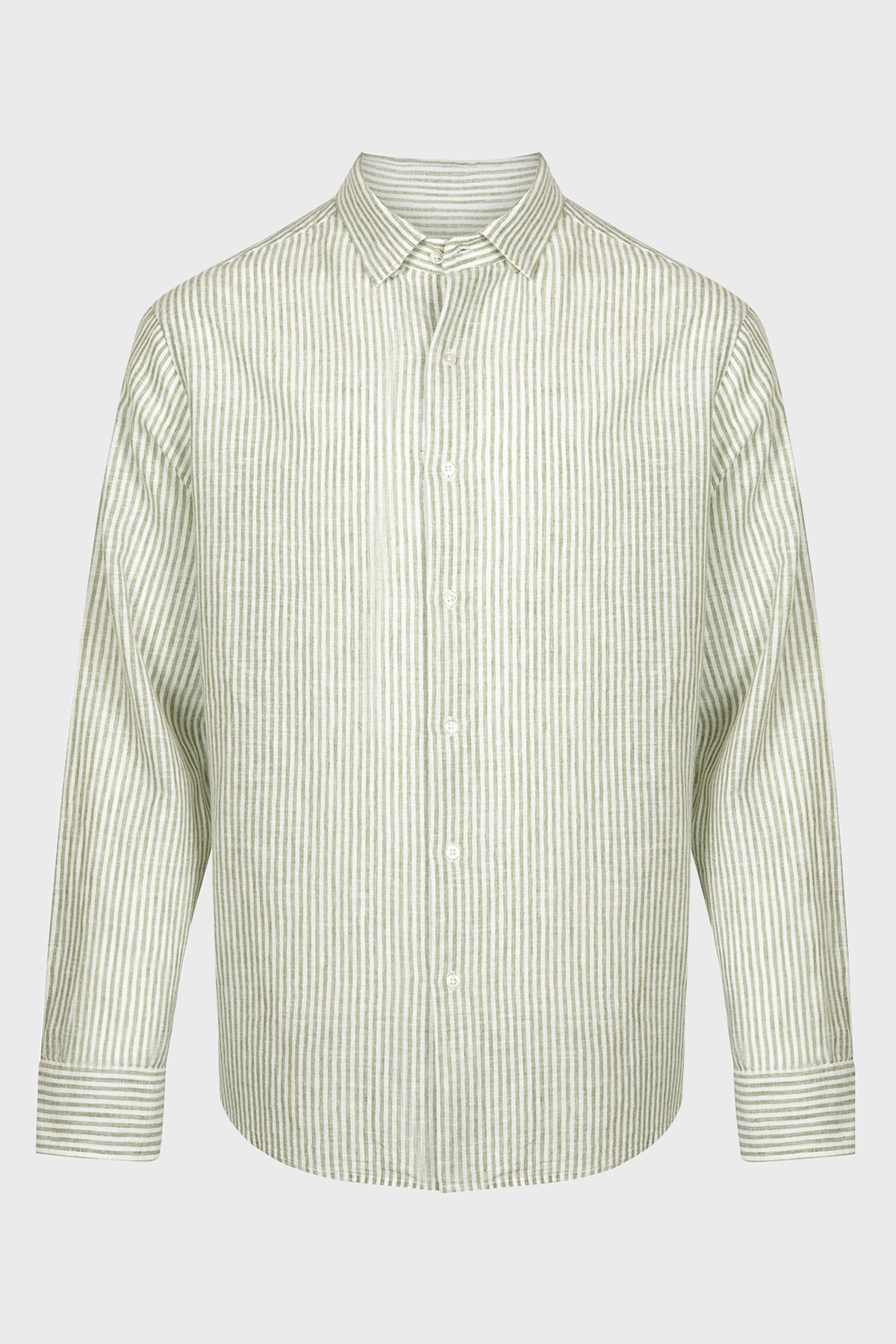 Luca Pamuk ve Keten Karışımlı Fitted Erkek Gömlek BM24002292MS 940 YEŞİL