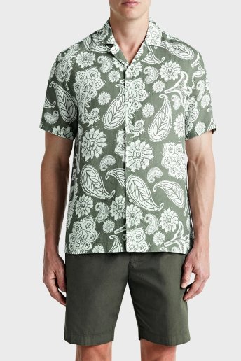 Mars % 100 Keten Comfort Fit Kısa Kollu Erkek Gömlek BM24002135MS 1013 HAKİ-BEYAZ