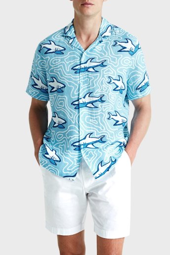 Mars % 100 Keten Comfort Fit Kısa Kollu Erkek Gömlek BM24002135MS 1061 MAVİ