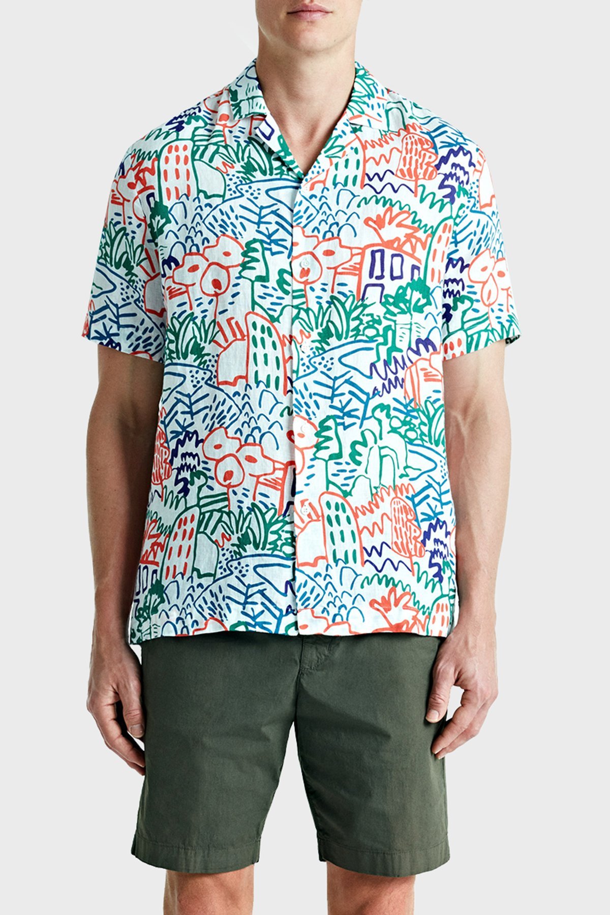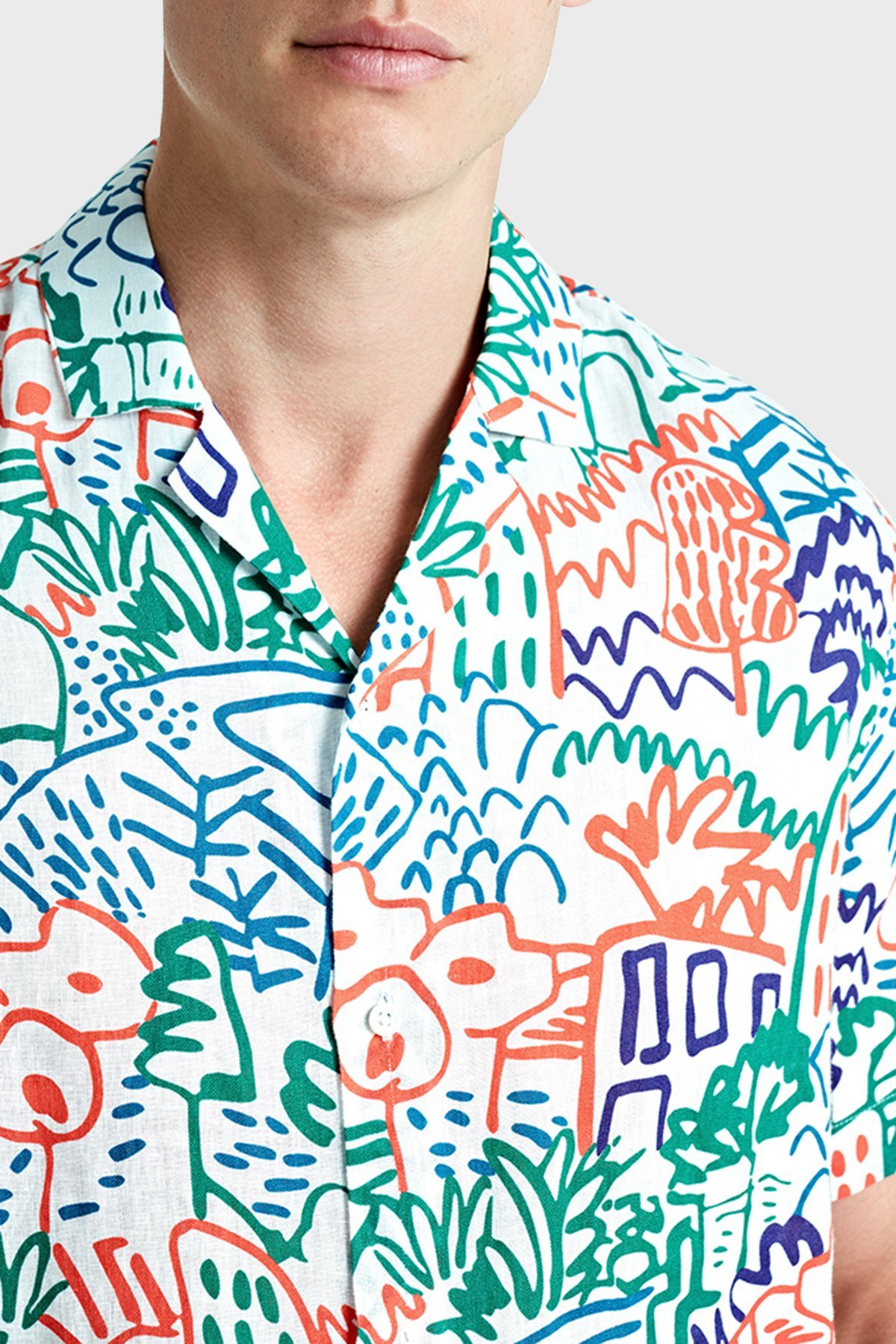 Mars % 100 Keten Desenli Comfort Fit Kısa Kollu Erkek Gömlek BM24002135MS 1010 BEYAZ