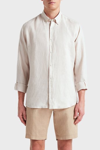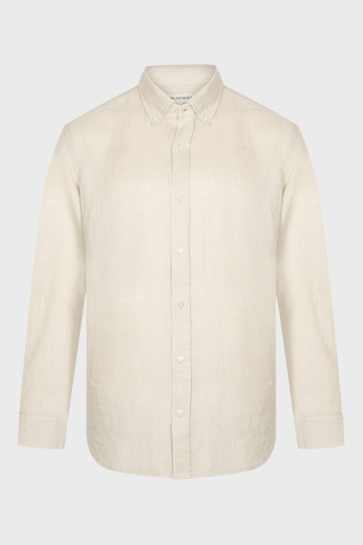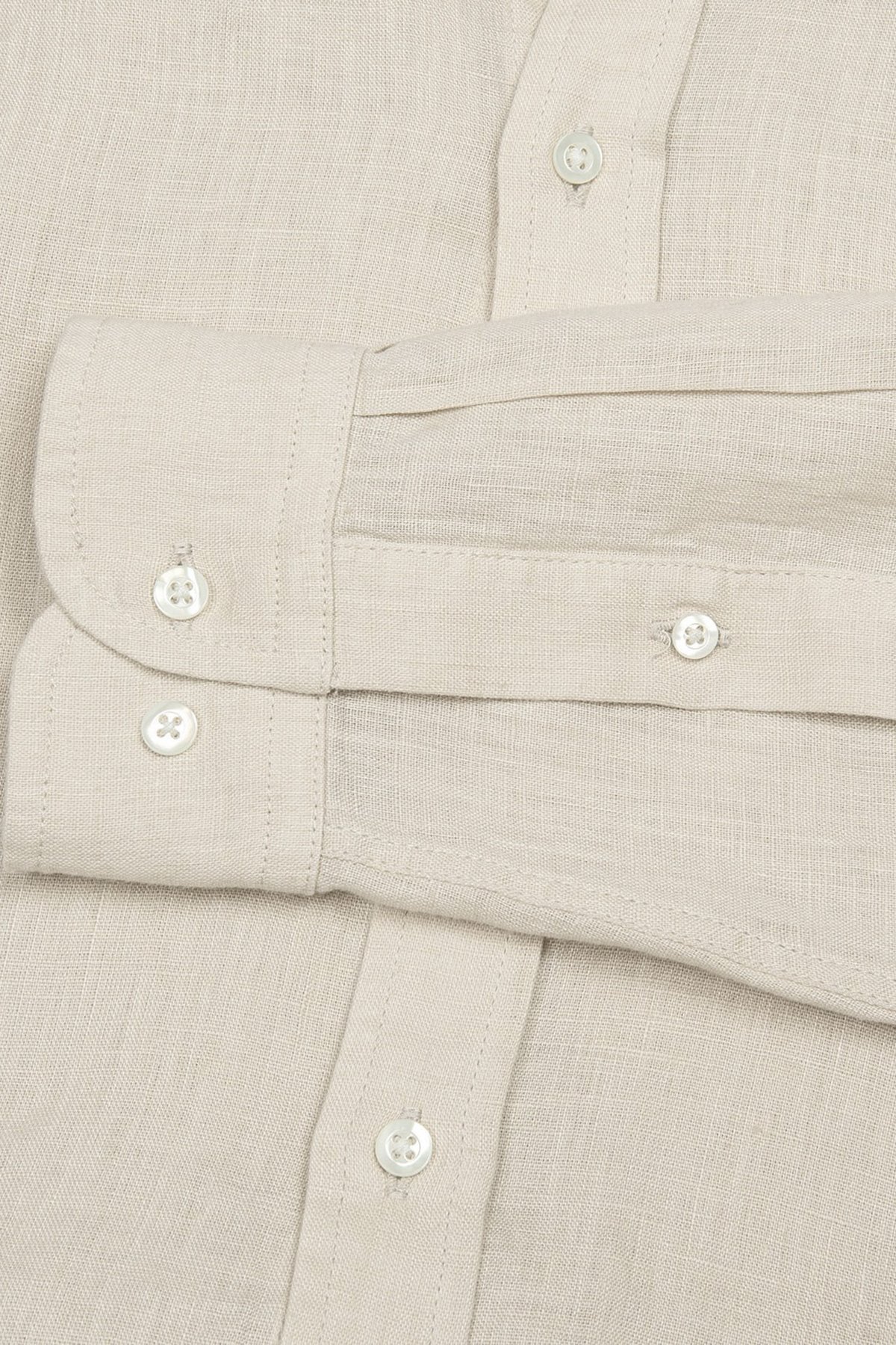 Martin % 100 Keten Düğmeli Yaka Uzun Kollu Relaxed Fit Erkek Gömlek BM23002003MS 918 EKRU