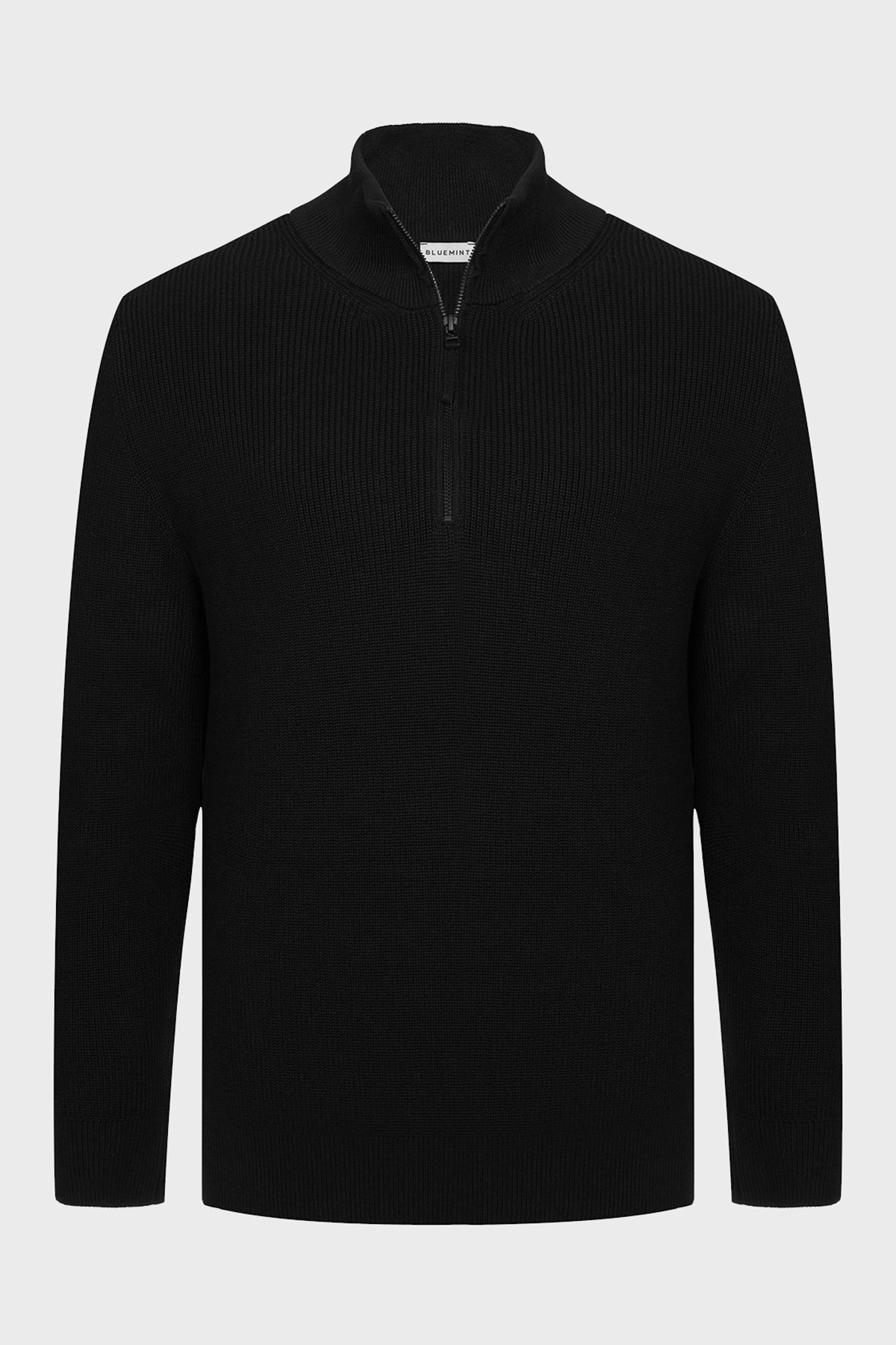 Nelson % 100 Pamuk Comfort Fit Yarım Fermuarlı Dik Yaka Erkek Kazak BM24020347MW 111 SİYAH