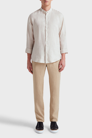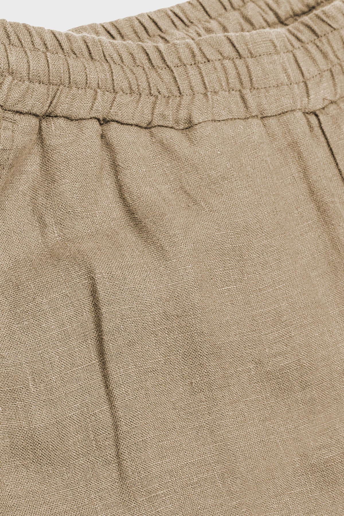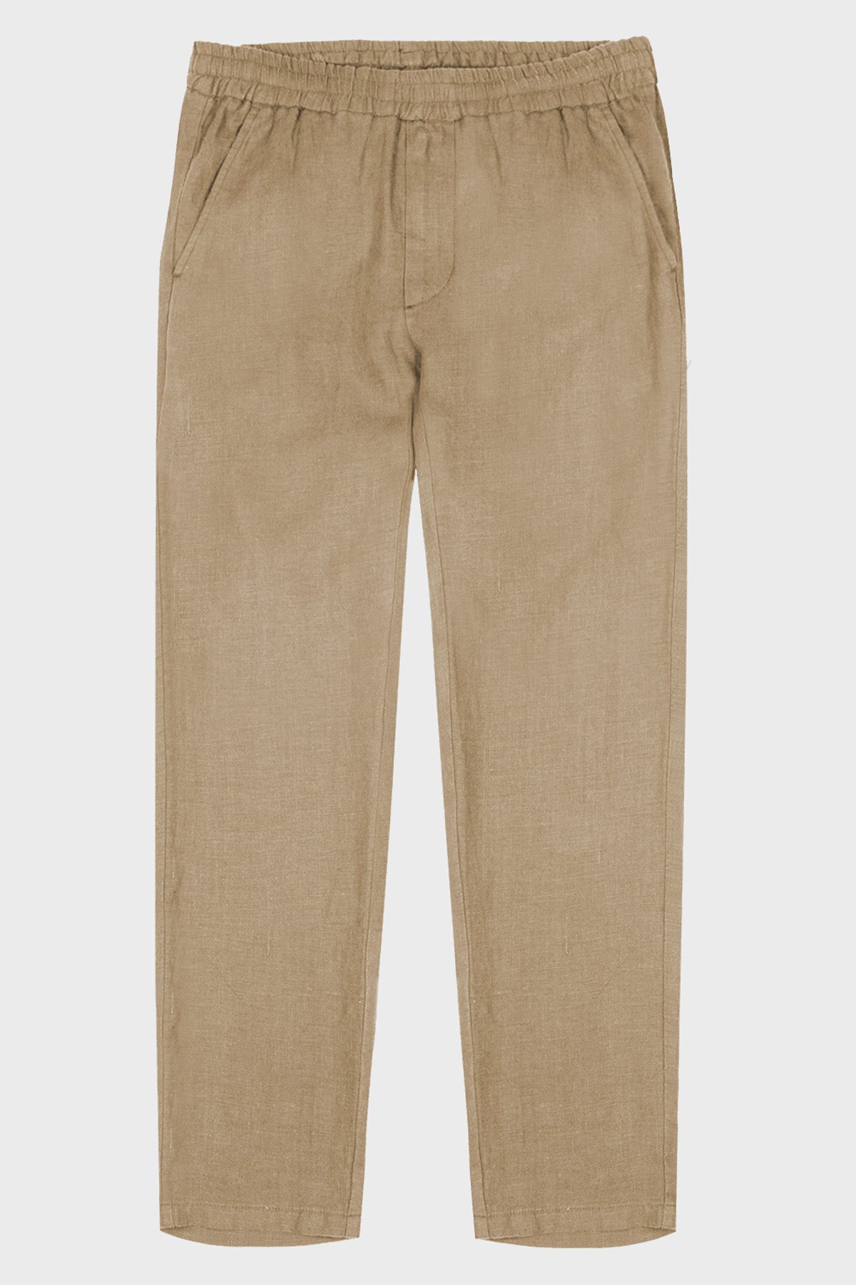 % 100 Keten Comfort Fit Lastikli Bel Daralan Paça Erkek Pantolon BM25009296MS 214 BEJ
