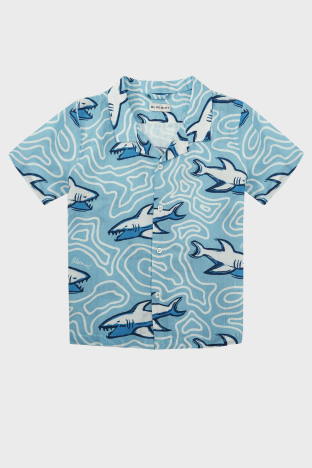 Peter % 100 Keten Comfort Fit Kısa Kollu Çocuk Gömlek BM24058209BS 1061 MAVİ