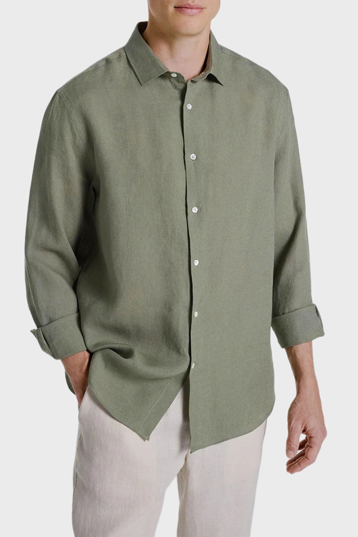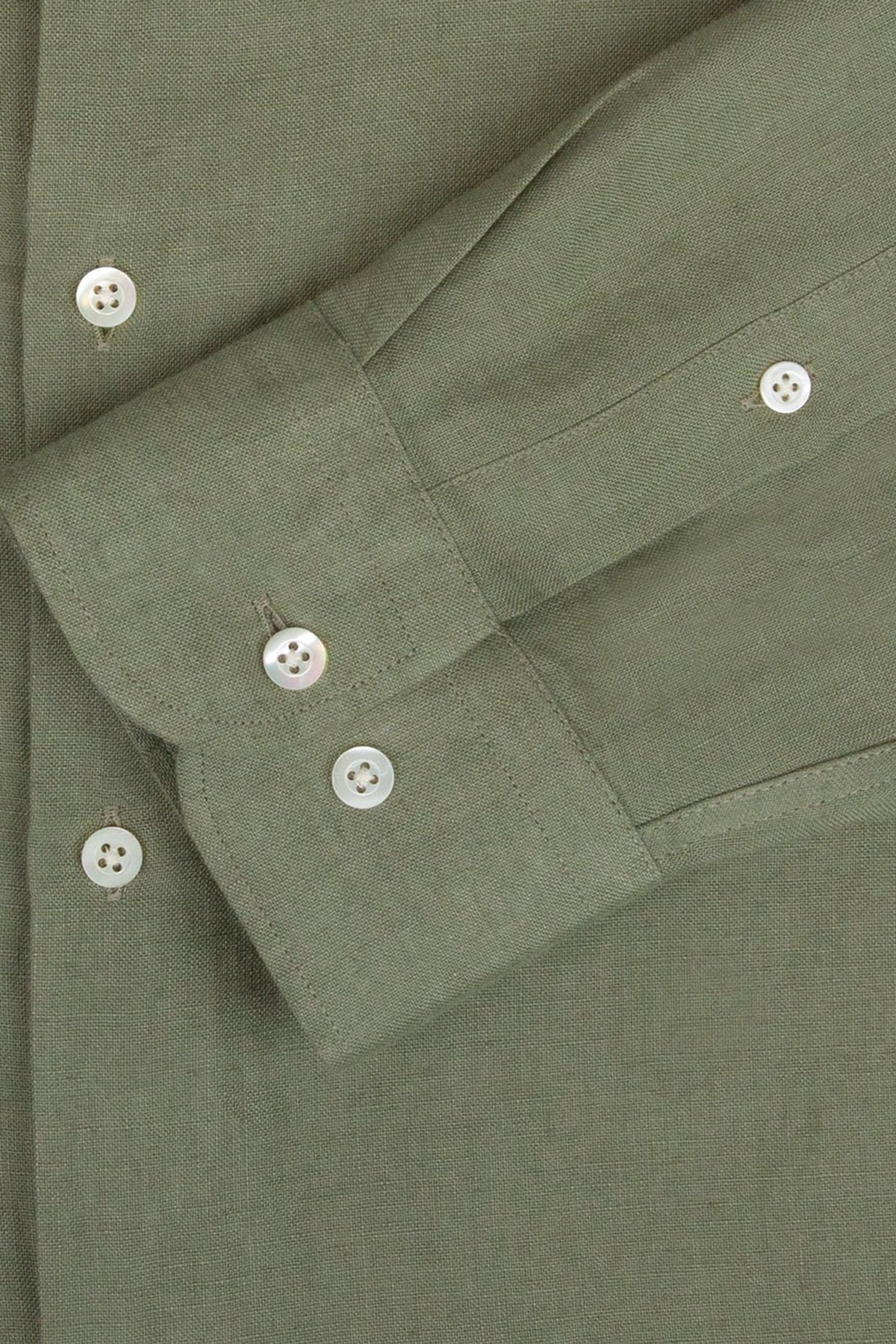 Sedef Düğme Klasik Yaka Uzun Kollu Keten Erkek Gömlek LUCA 1015 HAKİ