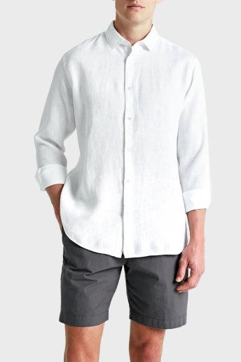 Sedef Düğme Klasik Yaka Uzun Kollu Keten Erkek Gömlek LUCA 112 BEYAZ