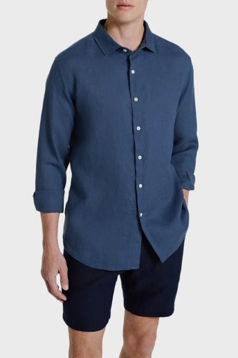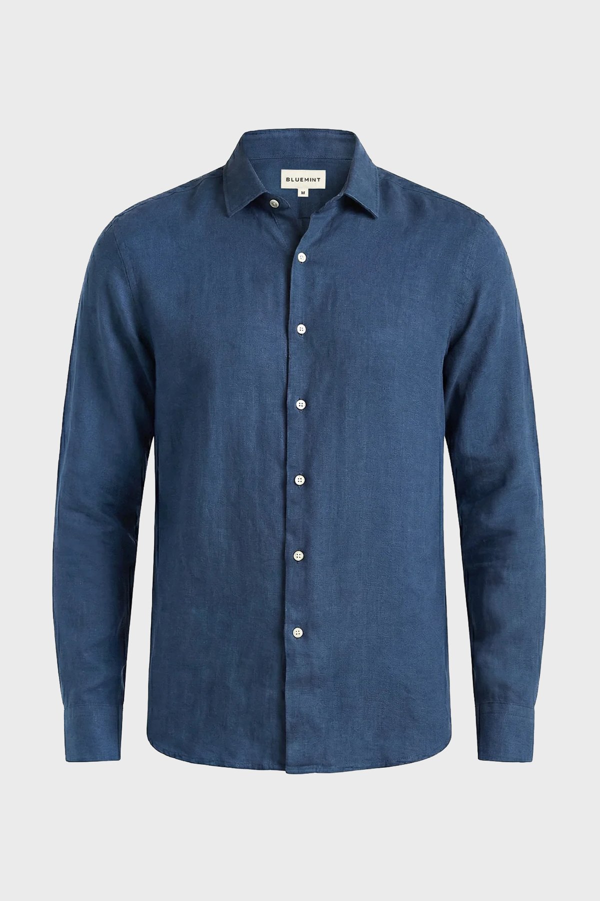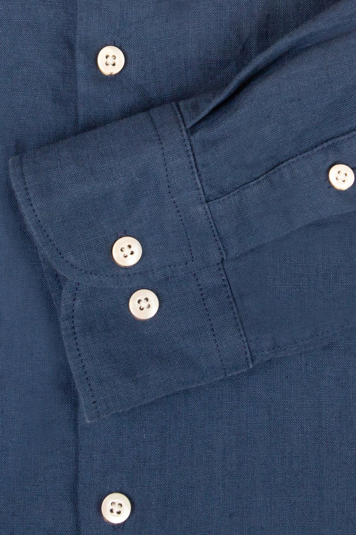 Sedef Düğme Klasik Yaka Uzun Kollu Keten Erkek Gömlek LUCA 1324 LACİVERT