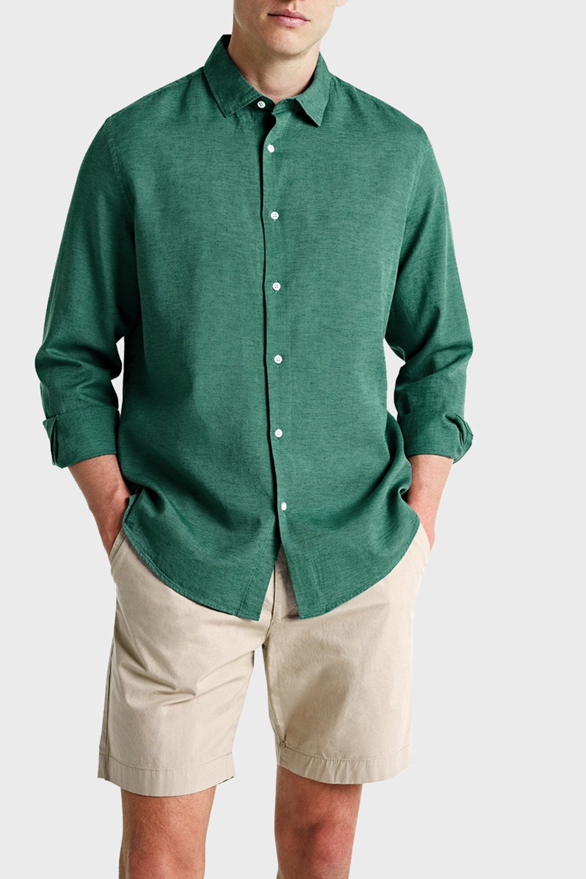 Tech Pamuk ve Keten Karışımlı Comfort Fit Erkek Gömlek BM24002306MS 1004 YEŞİL